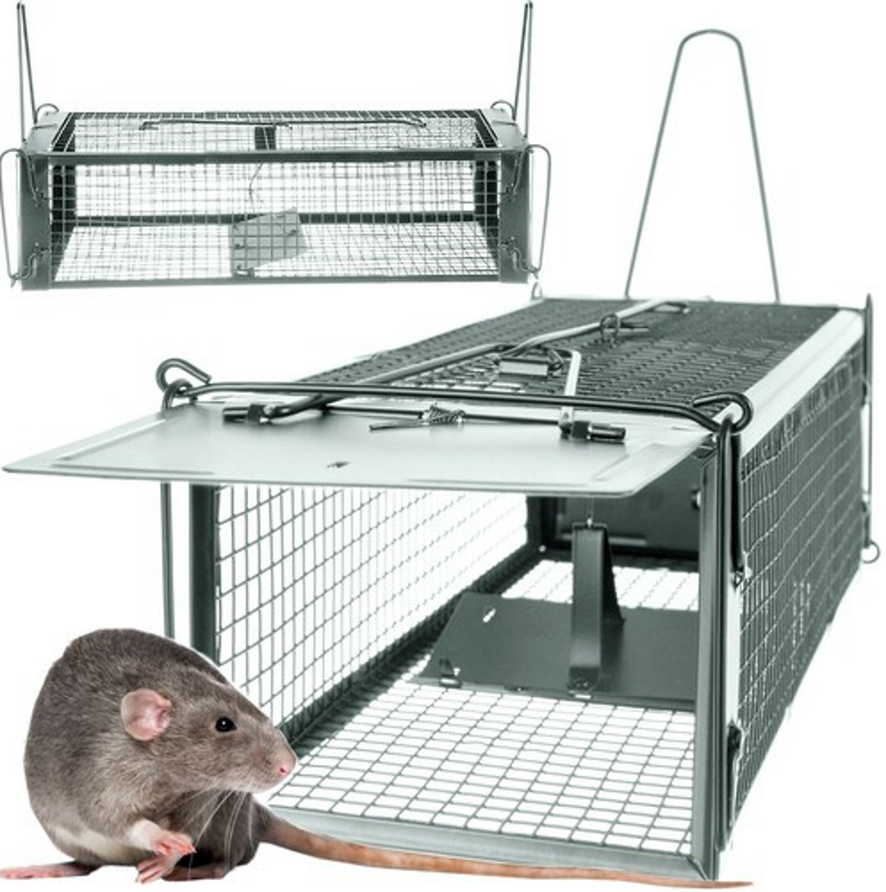 2 MANERE PENTRU TRANSPORT - capcana este echipata cu 2 manere metalice atasate. Acest lucru este important atunci cand mutati un animal prins. Manerele sunt la distanta potrivita de mana ta. Aceasta solutie te va proteja de un posibil atac cu dintii sau ghearele unei rozatoare.