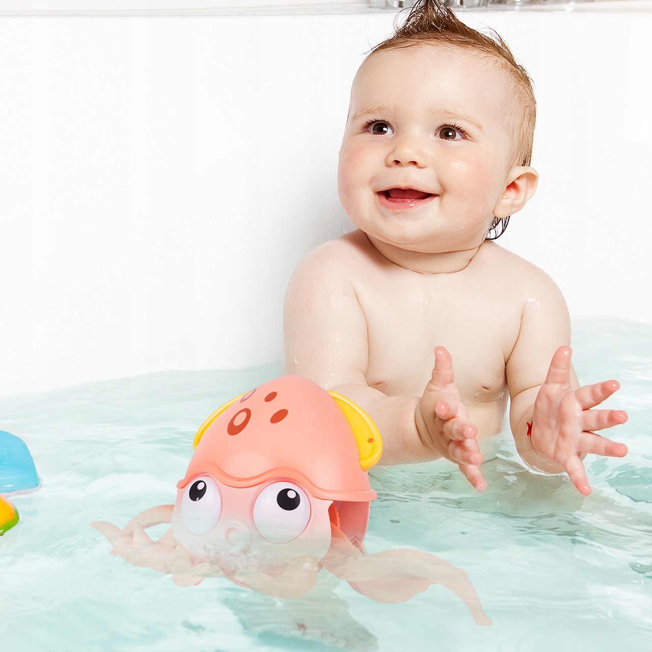O caracatita fermecatoare, perfecta pentru primele plimbari ale copilului tau si ca jucarie pentru baie.