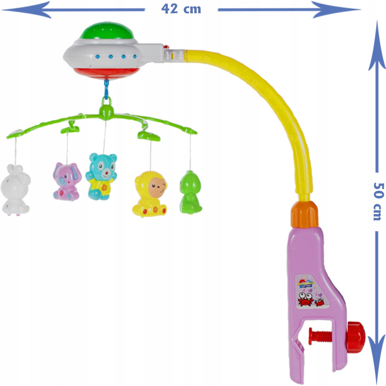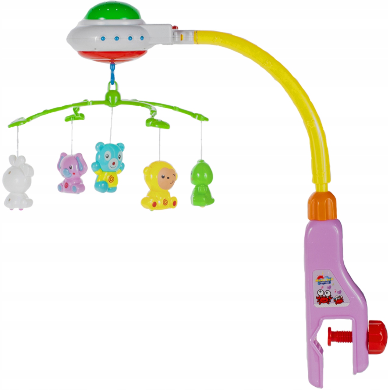 Carusel interactiv IDL Sweet Dreams cu Proiector ce afiseaza o varietate de simboluri in diferite culori, Accesorizat cu buton de rotire si diverse jucarii in forma de animale ce aduc linistea pe chipul bebelusului