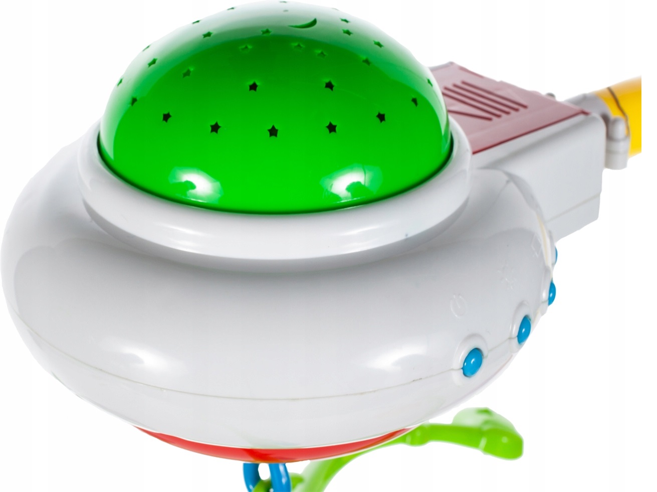 Accesorizat cu un proiector modern, dupa pornire,acesta afiseaza o multime de elemente celeste pe tavan, ceea ce il va linisti. Prin utilizarea butonului puteti modifica culoarea reflectiilor afisate.
