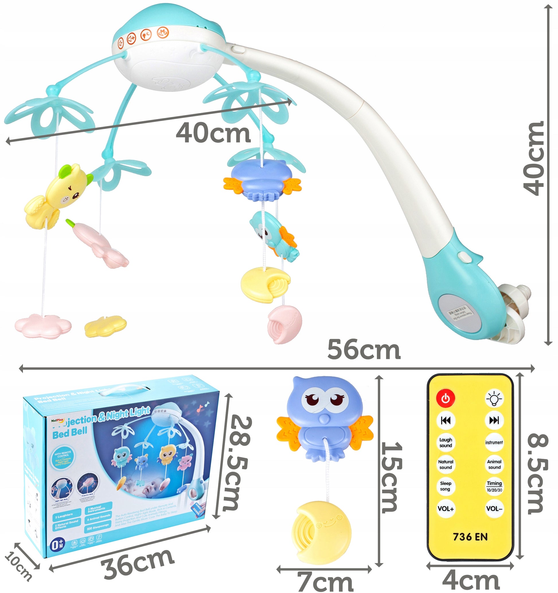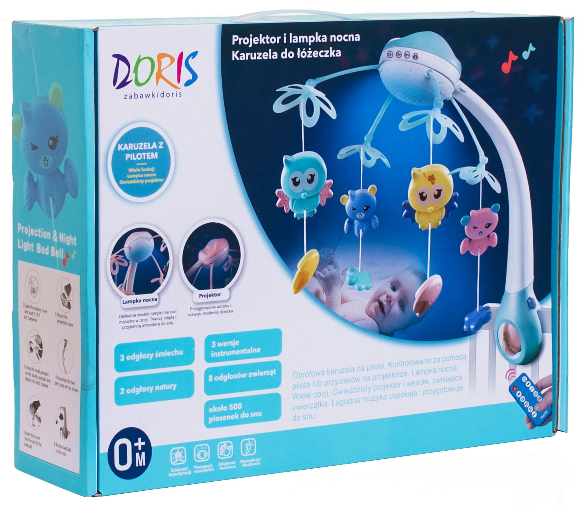 Caruselul multifunctional, viu colorat este ideea perfecta pentru o jucarie pentru copii din prima zi de viata. Un set de 500 de melodii placute il vor linisti si il vor pregati pentru somn. Datorita formelor multicolore copiii dezvolta imaginatia si simturile auzului si ale vederii. Proiector poate fii folosit si ca lumina de veghe iar telecomanda este utila in controlul de la distanta.