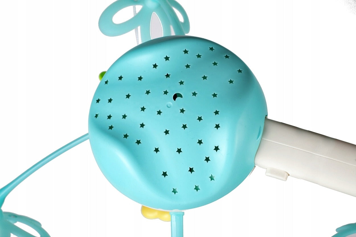 Carusel Interactiv Multifunctional Night Bed Bell idealStore, Rotire 360°, Efecte Luminoase si Sonore, Proiector cu Stelute, 500 Melodii de Somn, Mod de Noapte, Oglinda, Telecomanda Inclusa, Culoare Turcoaz