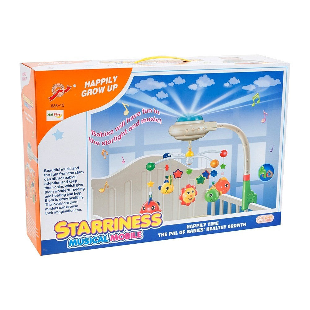 Vine dotat cu butoane pentru ajustarea volumului melodiilor, pentru oprirea sau pornirea rotatiilor jucariilor sau a proiectorului de lumini. Acesta este creat special pentru a ajuta copilul sa se linisteasca si sa ii creeze un spatiu linistitor pentru somn, dar tot odata il ajuta pe cel mic sa isi dezvolte abilitatile de observare si de ascultare.