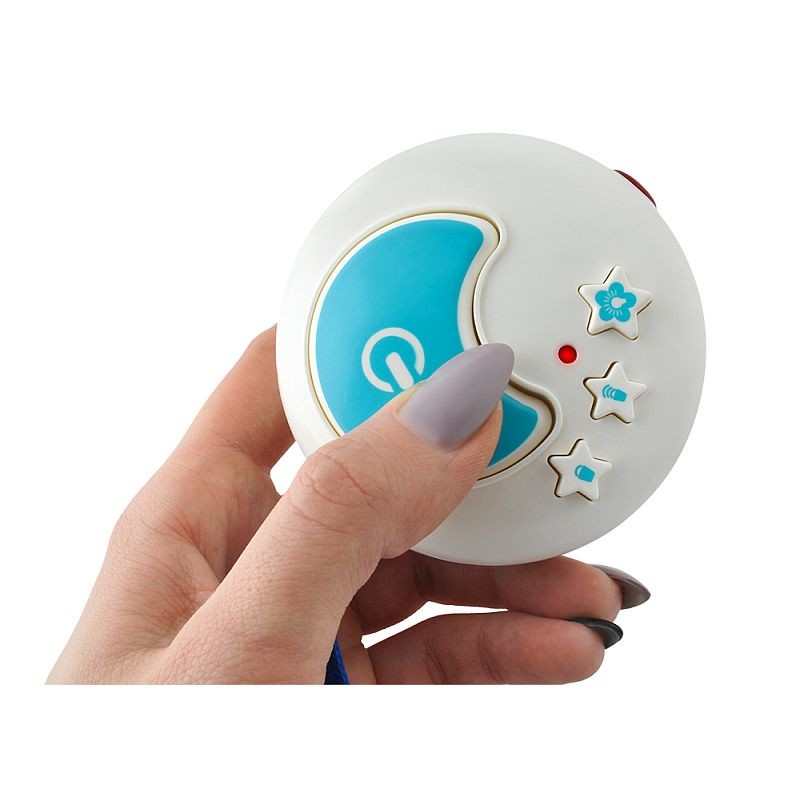 Un mare avantaj al acestui carusel este faptul ca dispune de o telecomanda cu care parintii pot controla de la distanta toate functiile principale, respectiv: carusel on/off, proiector on/off, sunetul, volumul sunetului, modificarea luminii si a intensitatii, oprirea rotatiei.