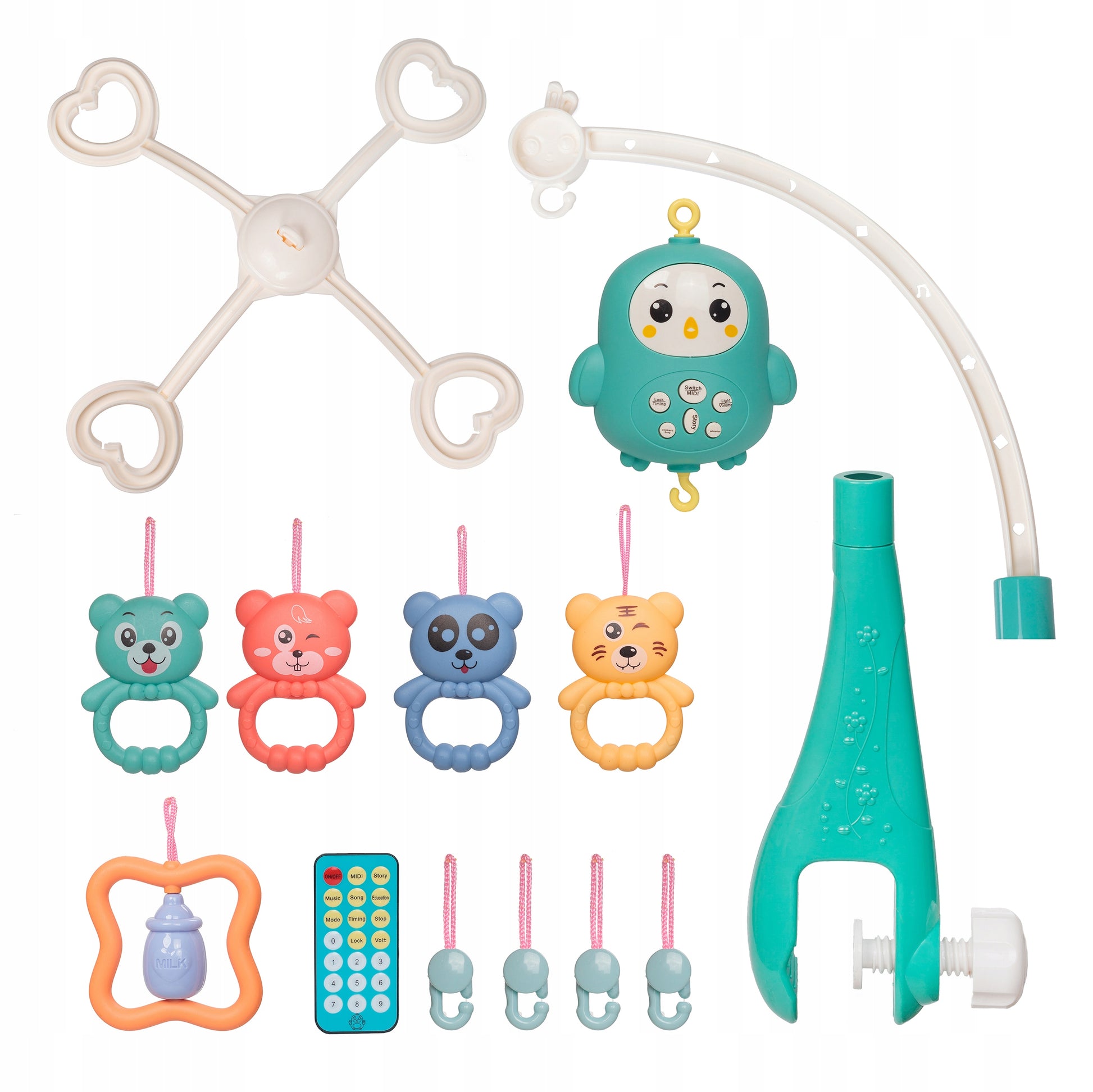 Setul include o telecomanda, datorita careia puteti controla de la distanta caruselul. De acum inainte, nu mai trebuie sa vii la patut din cand in cand doar pentru a schimba cantecul sau povestea cand bebelusul tau se plictiseste. Folosind telecomanda, puteti opri si caruselul atunci cand bebelusul adoarme.