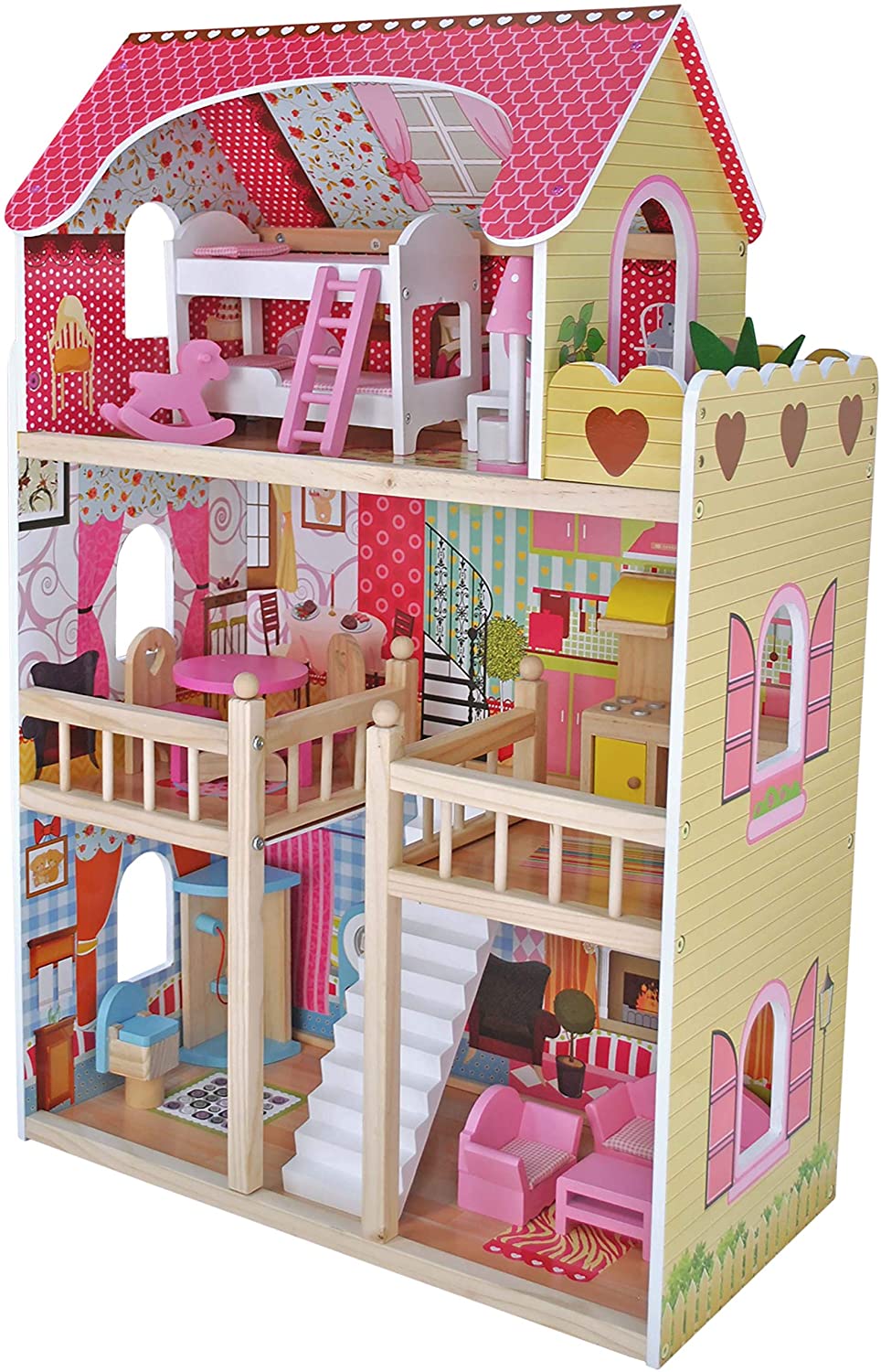 Un moment de distracție este suficient pentru ca un copil să se indrăgostească. Intreaga casă are 3 niveluri separate cu un total de 5 camere - toate imitand perfect o casă rezidențială reală. Fiecare cameră este decorată intr-un stil diferit, cu decor și mobilier pentru a se potrivi naturii și scopului camerei. Cu toate acestea, nu este nimic care să impiedice copilul să se joace ca designer de interior și să-l aranjeze in felul lor. Setul include un set de 17 mobilier din lemn care pot fi indepărtate și mutate in mod liber, fără restricții!
