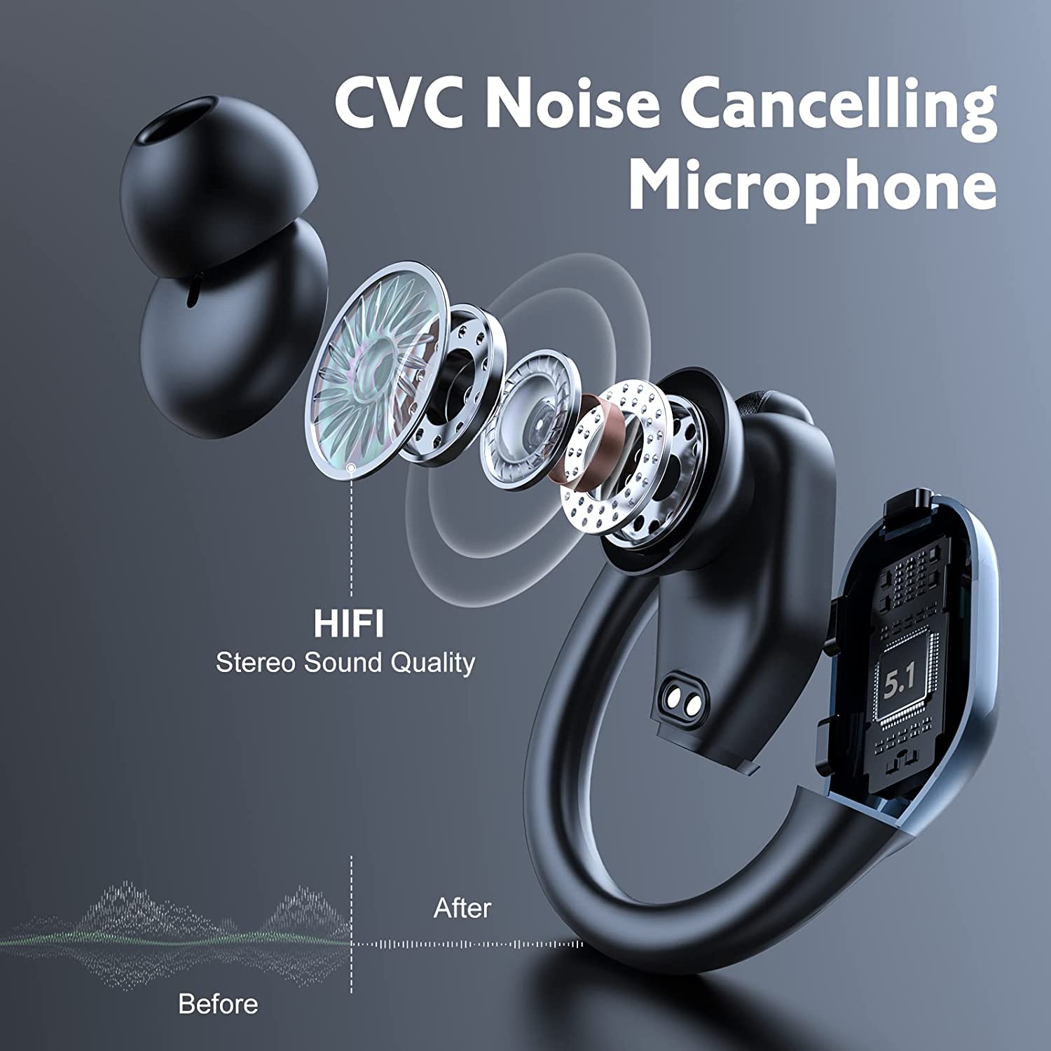 Castile noastre sport sunt echipate cu carlige moi, reglabile, sigure pentru confort usor si design de stabilitate, si trei dimensiuni diferite de varfuri pentru urechi pentru alegere, asigurand total ca castile sport raman confortabil ferm pe loc si nu va cadea. Alegere excelenta pentru sport, alergare, antrenament, calarie, jocuri, calatorii, lucru, intalnire, conducere.