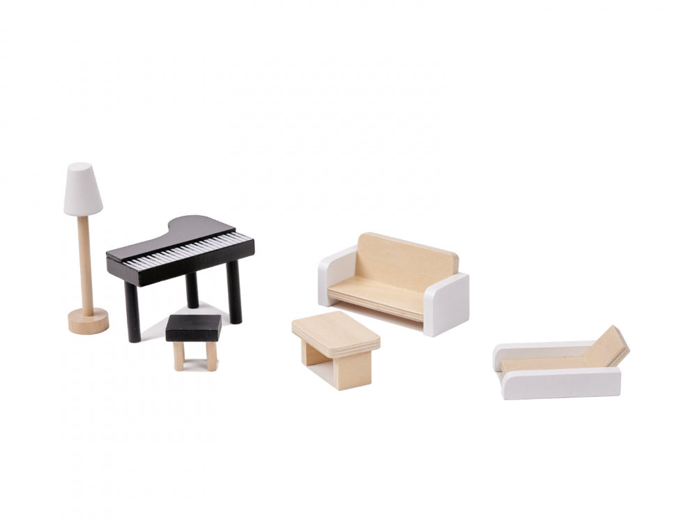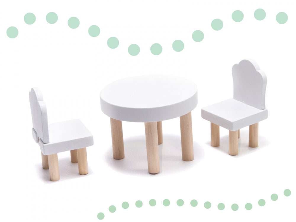 * Dupa cum se potriveste unei case adevarate, i s-a atasat mobilier frumos din lemn, care va fi o completare perfecta pentru orice camera.