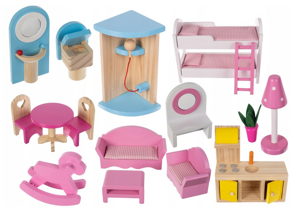 Setul include, de asemenea, un set de 15 piese mobilier din lemn care pot fi indepartate si mutate cu usurinta fara nicio restrictie!