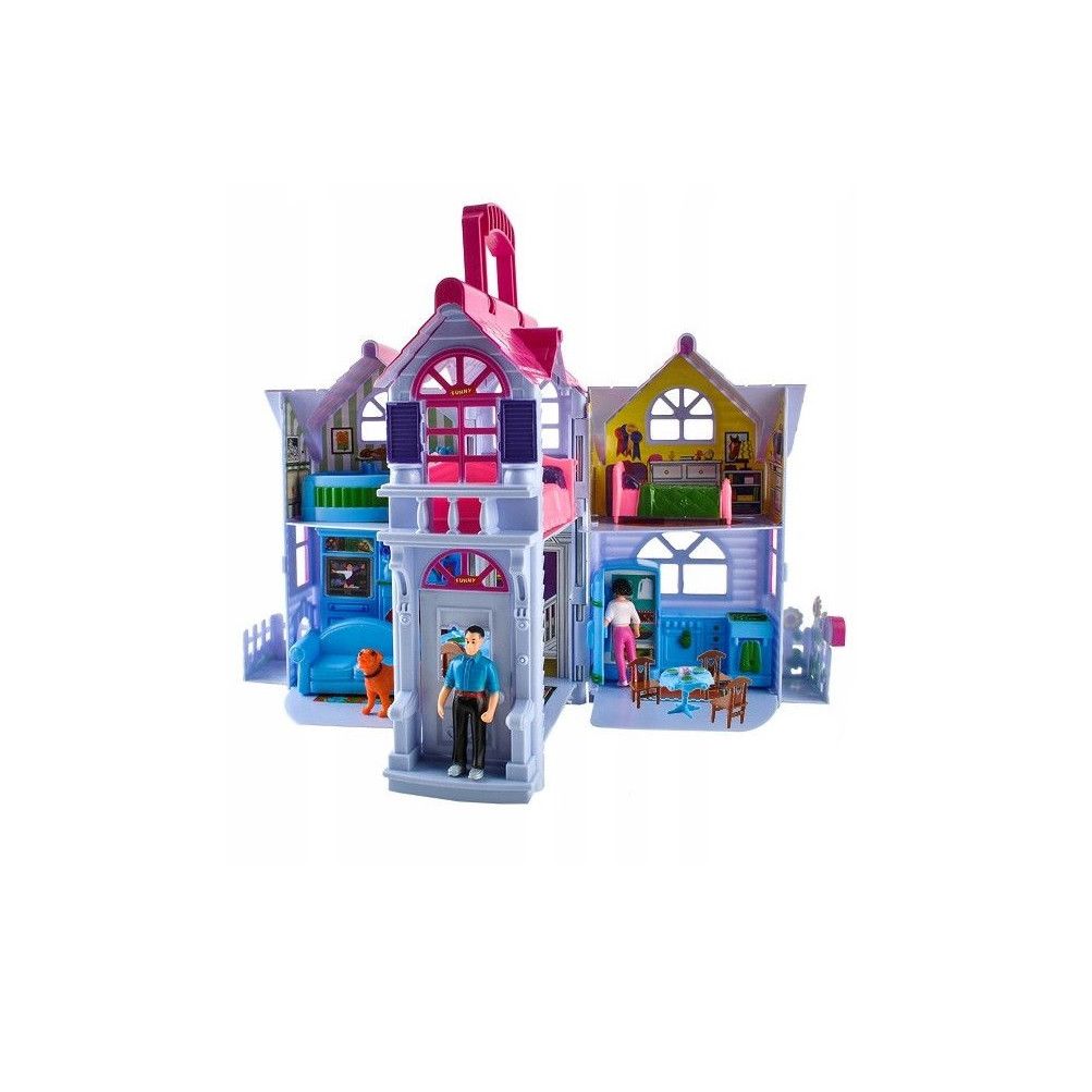 Casuta de Papusi idealSTORE PINK FAMILY VILLA, Dimensiuni 46 x 25 x 15 cm, Echipata cu mobilier si 18 Accesorii inedite, 4 Camere decorate in stil diferit, Diversifica jocul de rol