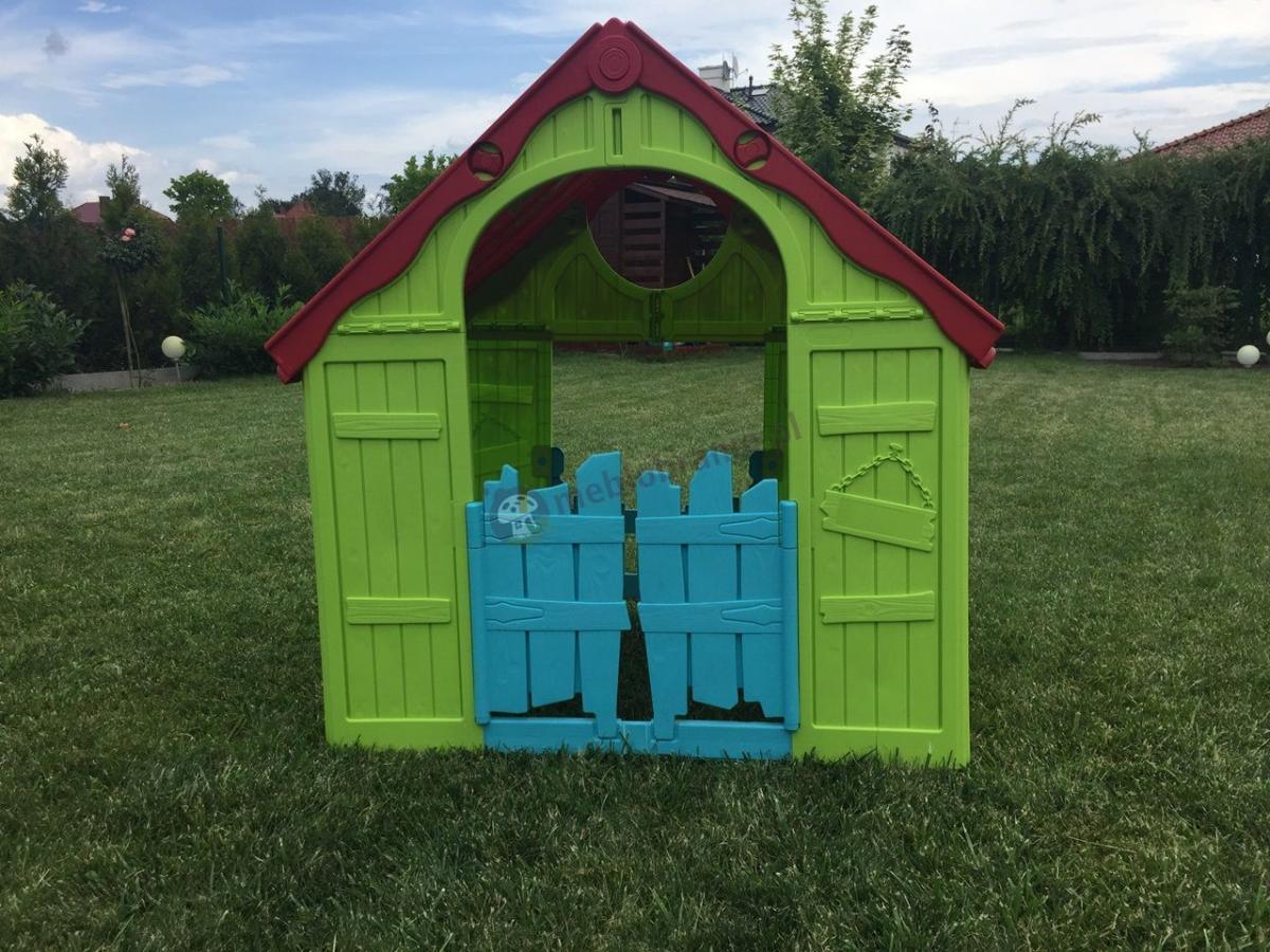 Culorile vii ale casei stimuleaza imaginatia copiilor, iar ferestrele mari si usile duble permit modelului sa fie folosit pentru diferite tipuri de jocuri.