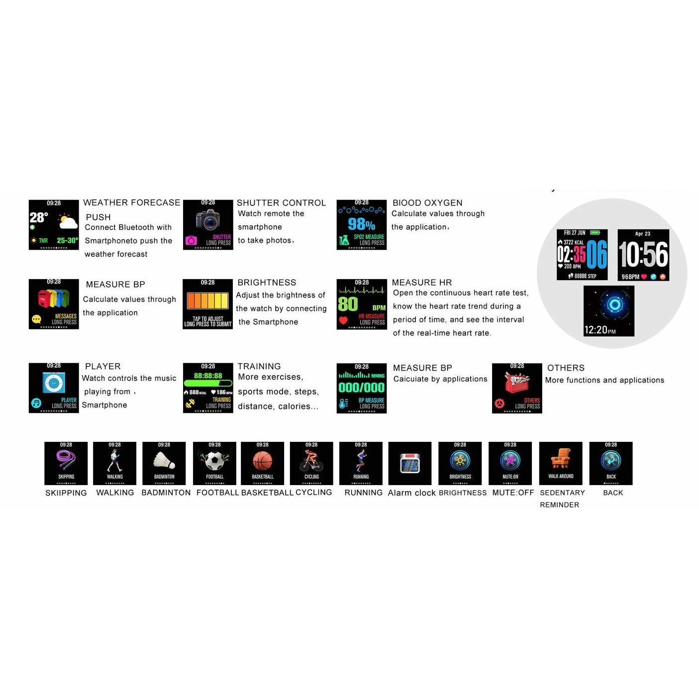 | Functii | Tip Alerta : Vibratii Apelare Bluetooth : ID Apelant Display Monitor Sanatate: Presiune Arteriala ,Monitor Puls ,Pedometru ,Amintire Sedentarism ,Monitor Somn Alte Functii: Alarma ,Bluetooth ,Cronometru Tip Notificari: Facebook , Twitter , WhatsApp Functie Telecomanda la Distanta : Camera Foto Telefon |