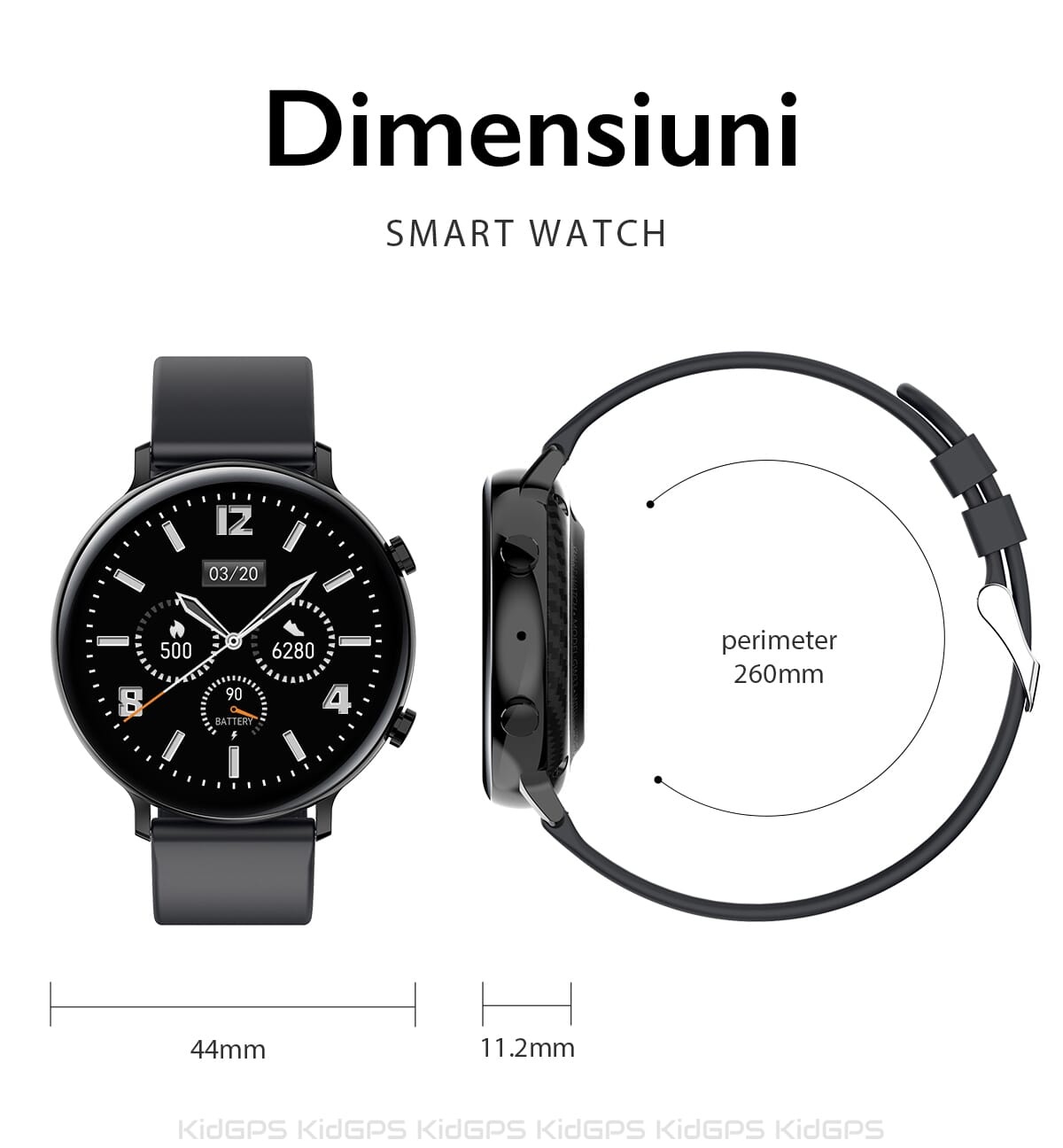 Dupa cum vedeti in imaginea de mai sus, noul ceas COLLECTION W33 idealSTORE are un design sportiv si elegant, avand o forma rotunda completa, cu doua butoane fizice pe ambele parti si potrivita pentru barbati si femei.
