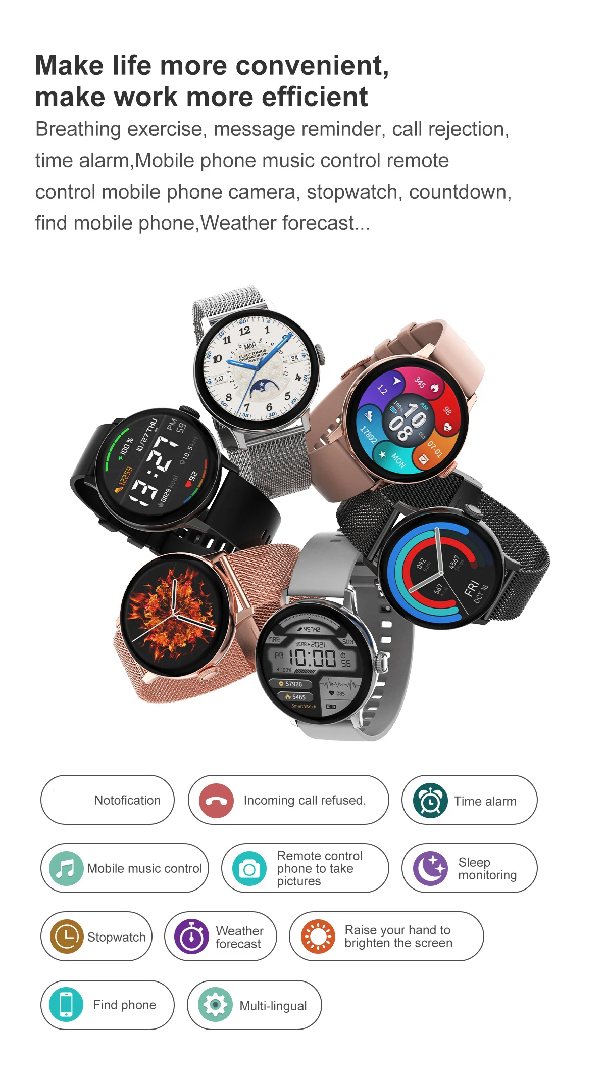Cu difuzorul incorporat si microfonul, ceasul inteligent este echipat cu apeluri Bluetooth. Accepta apeluri hands free, taste de apelare, agende telefonice, jurnalele de apeluri. Un apel fara maini pe ceasul inteligent.