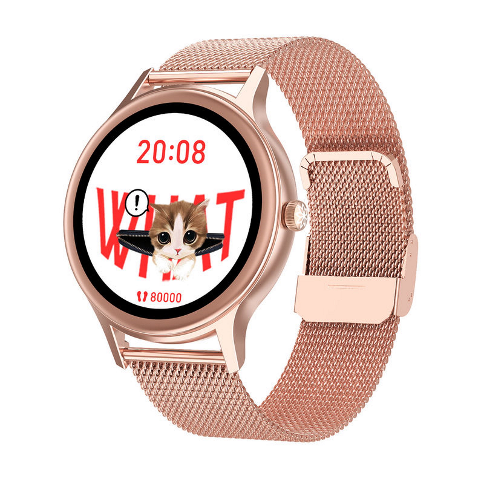 Ceas smartwatch idealStore Lux Style DT66, Funcii multisport, Monitorizare Temperatura Corporala, Monitorizare Ritm Cardiac, Tensiune, Oxigen, Menstrual Mamagement, Touchscreen, Bratara Metalica Roz