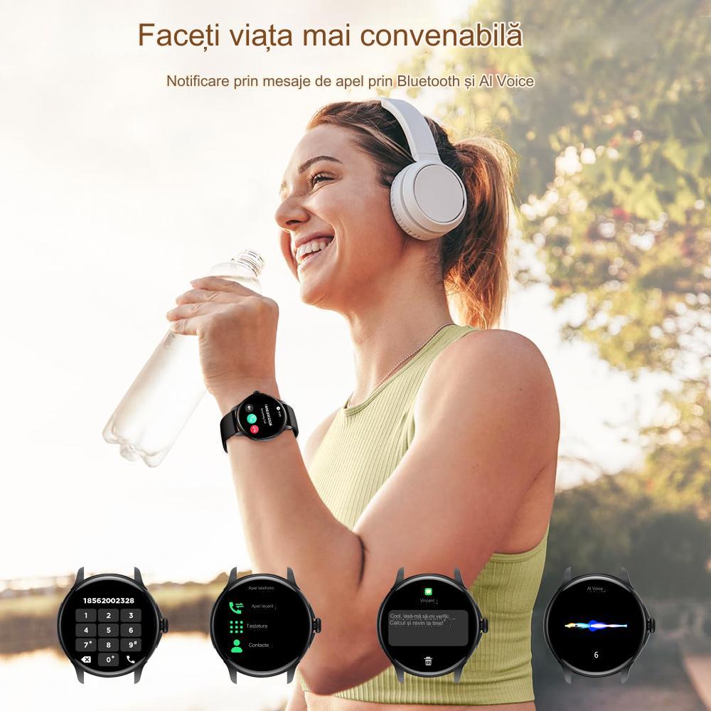 Ecran de ultima generatie tip AMOLED, control vocal, NFC, apelare si raspuns la apel, notificari, control inteligent prin gesturi, Al Voice si multe altele