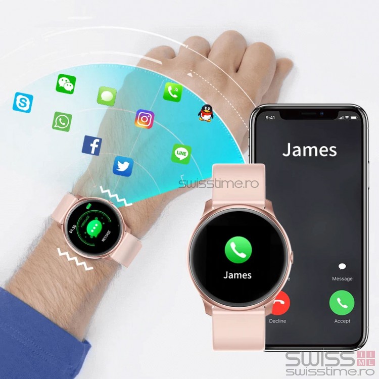 - Notificari: Conectat la App, toate apelurile si mesajele primite pe telefon pot fi sincronizate cu smartwatch-ul