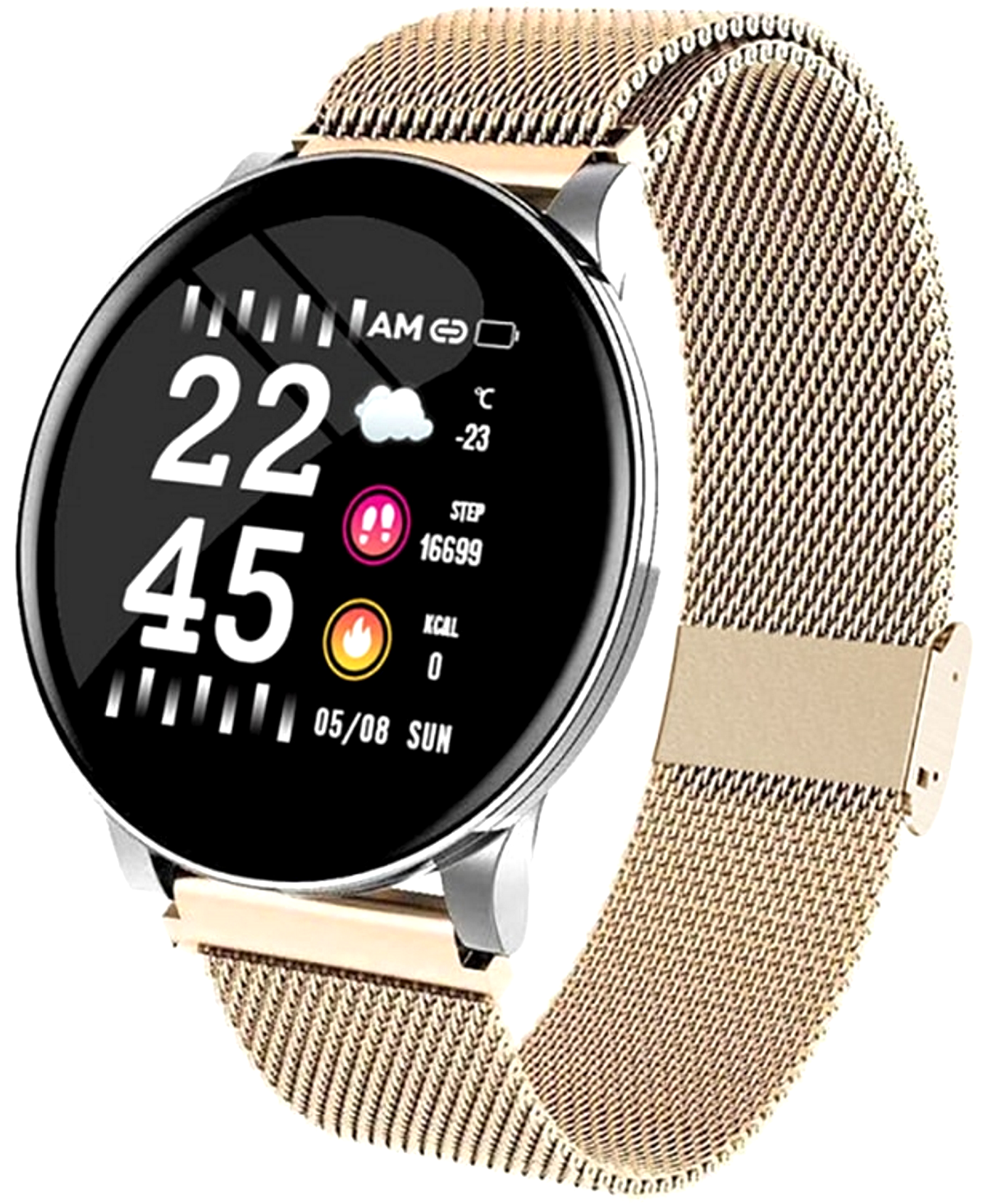 Ceas SmartWatch si Bratara Fitness 2in1 BestProof Extra 8, Monitorizare pasi si distanta, Detectarea frecventei cardiace, Functie Anti-lost, Afisaj Meteo, Notificari apeluri/mesaje, Impermeabilitate IP67, Metalic Gold