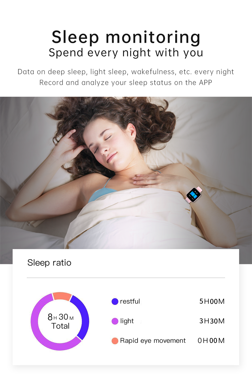 - Monitorizarea calitatii somnului – monitorizarea automata a somnului pe timpul noptii, dar si calitatea acestuia. Calitatea zilnica a somnului si timpul de somn se calculeaza in functie de datele furnizate de bratara inteligenta. Poarta-l in fiecare seara si vei primi sfaturi personalizate despre ora recomandata de culcare. Si nu uitati ca somnul joaca un rol major in sanatatea dumneavoastra, asa ca asigurati-va ca utilizati aplicatia de monitorizare a somnului pentru a vedea cate ore dormiti in fiecare noapte si pentru a face ajustari la programul dumneavoastra.