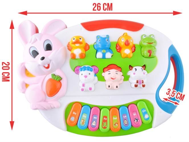 Centru de activitati Micul Pianist Iepuras cu Melodii si Luminite , Difuzor incorporat , Dimensiuni 24.5 cm lungime , 18 cm latime , Culoare Alb