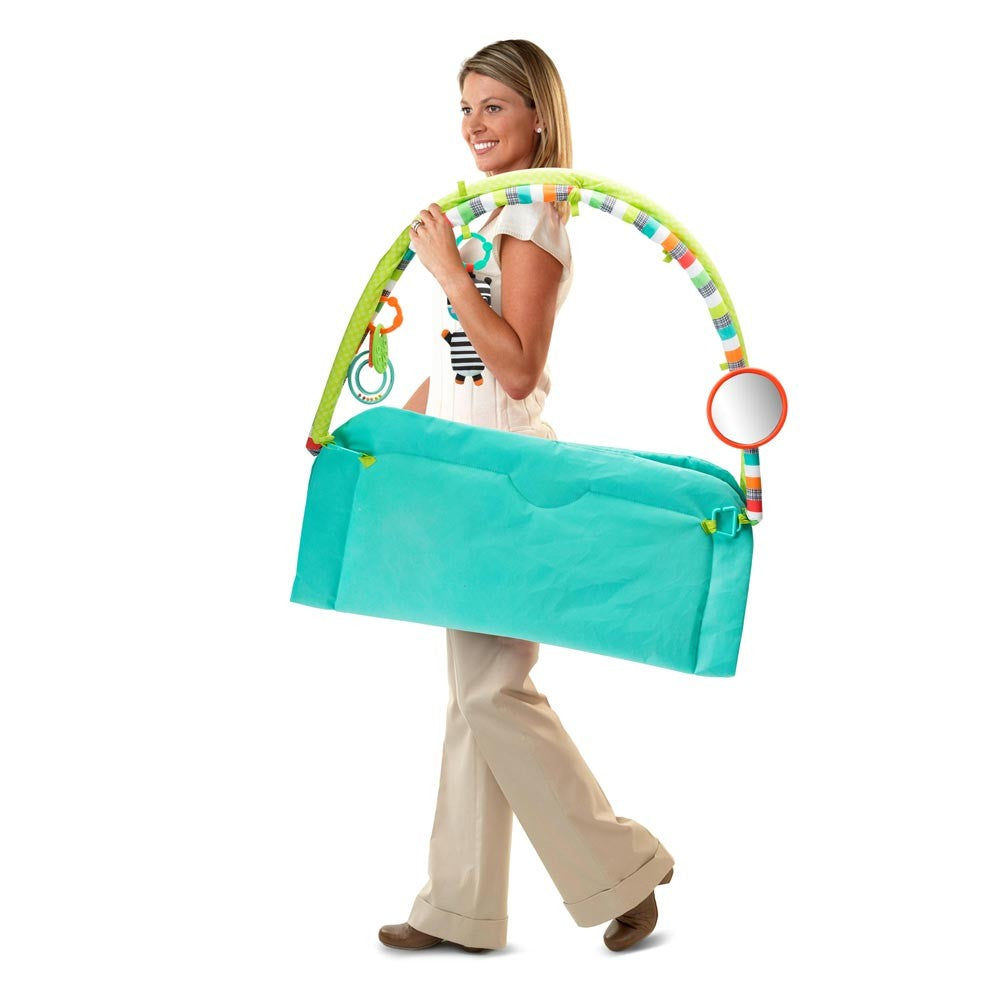 Covorasul este usor de pliat, ceea ce va permite sa-l luati cu dvs. oriunde. Covorasul are bucle suplimentare pentru fixarea mai multor jucarii.