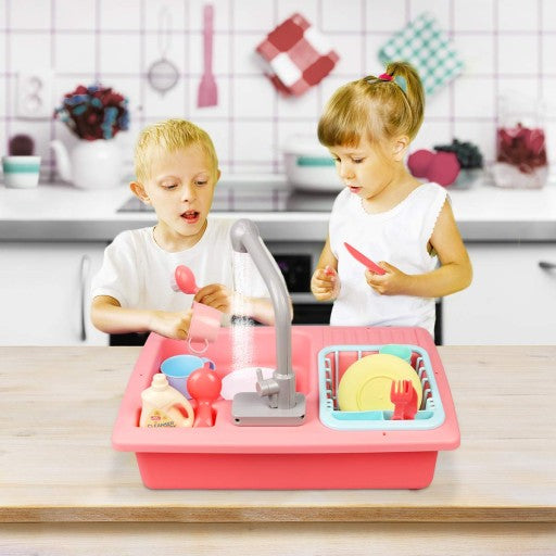 Chiuveta idealStore Super Wash, cu vesela,10 Accesorii, Farfurii, Cani, Pahare, Tacamuri, Detergent de Vase, Roz