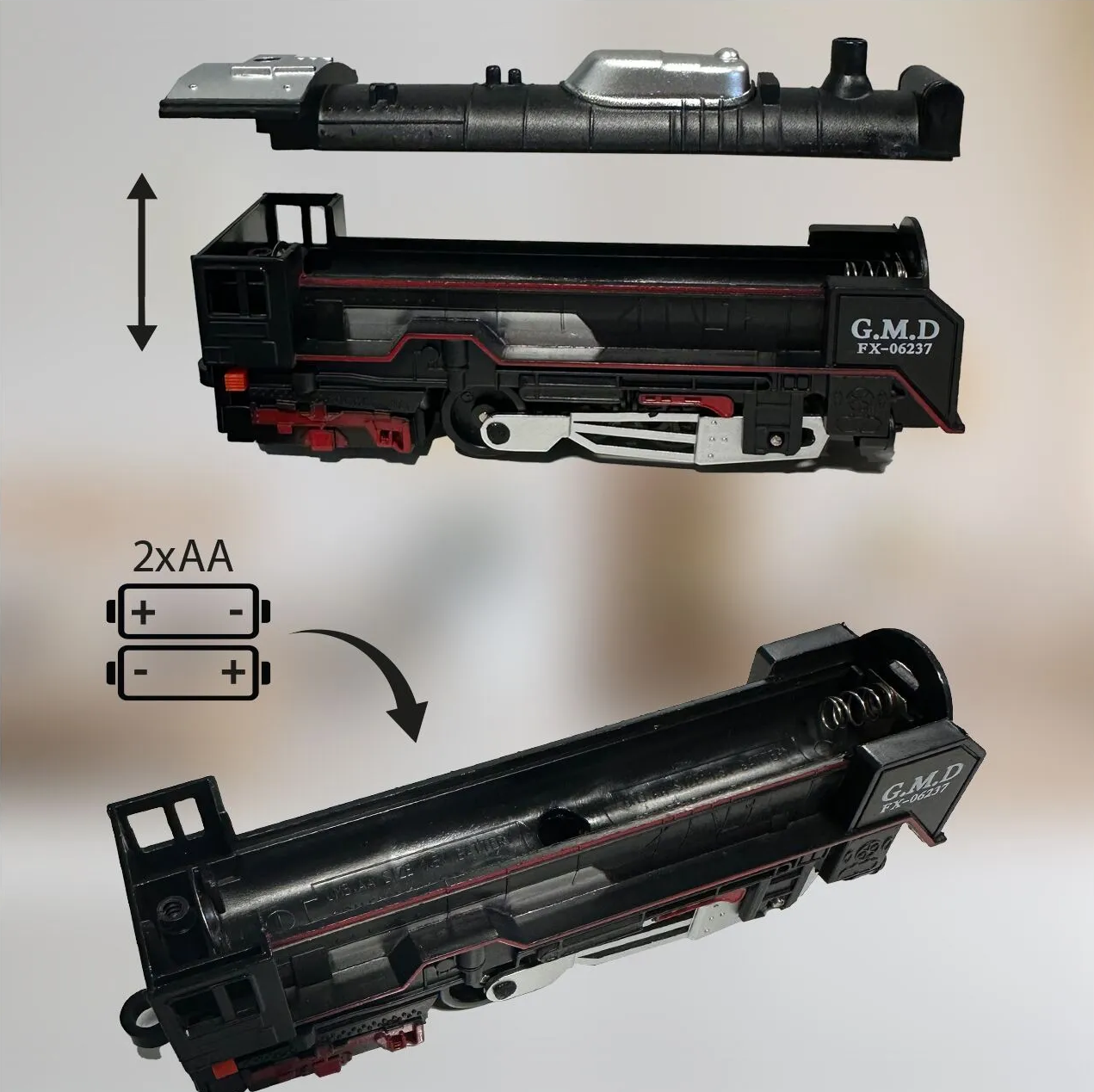 Locomotiva are un varf cu deschidere. In interior exista spatiu pentru 2 baterii AA.
