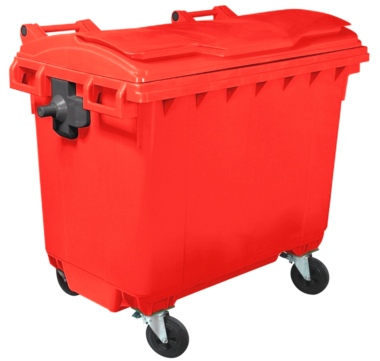 Container Profesional idealStore EcoPub, capac Plat, Roti cu rotire 360, Plastic Virgin, Metal Zincat, Rezistent la caldura-inghet si substante chimice, 660 L, Rosu