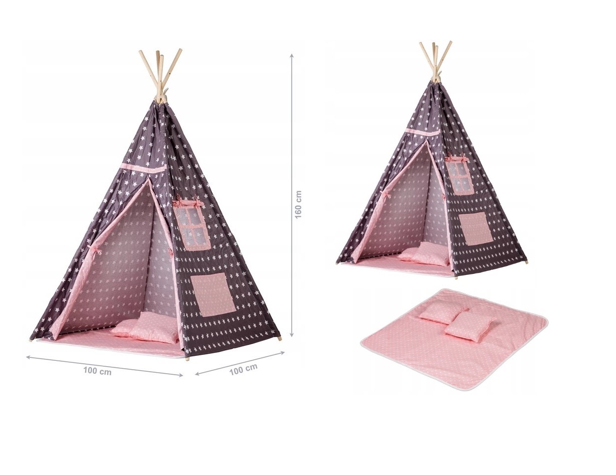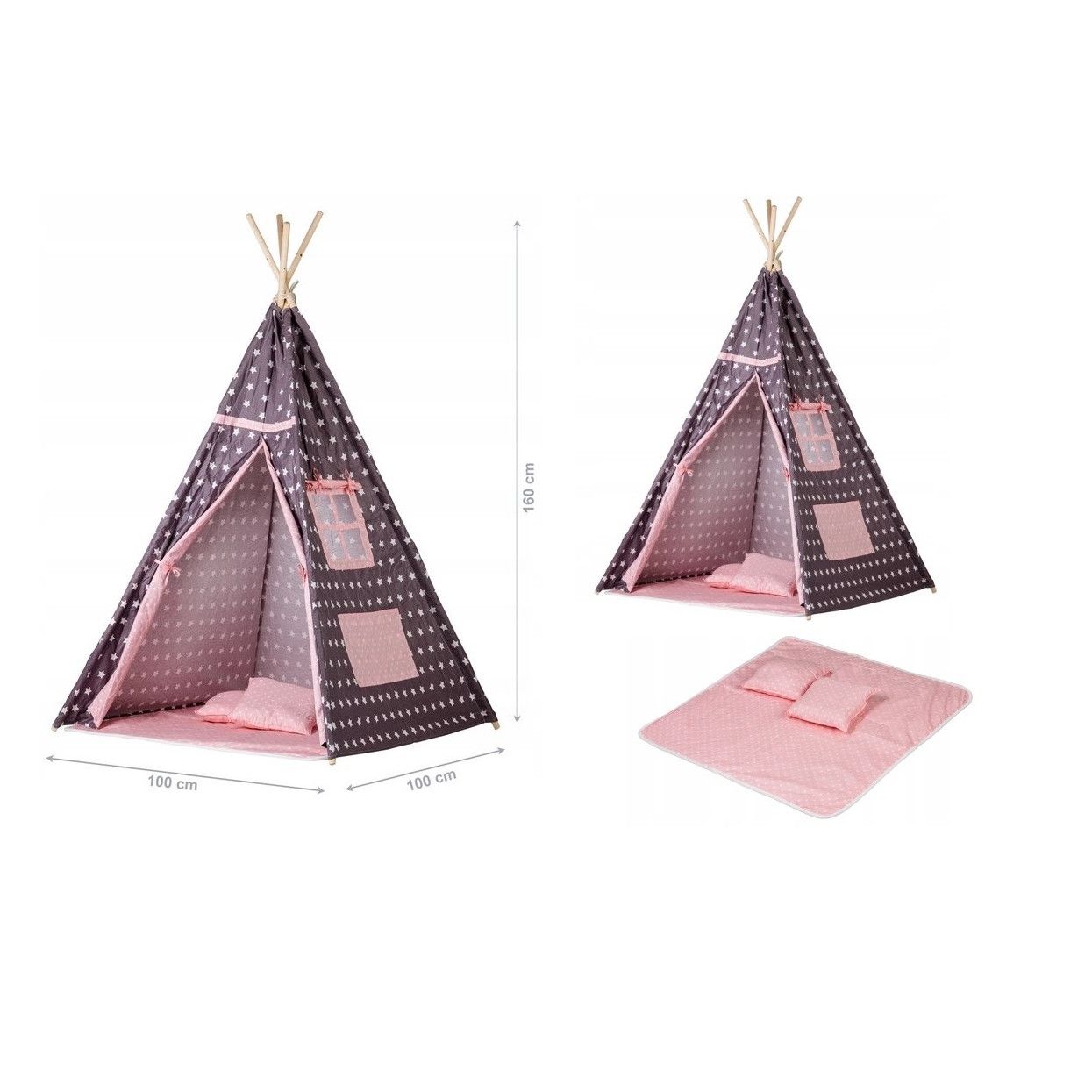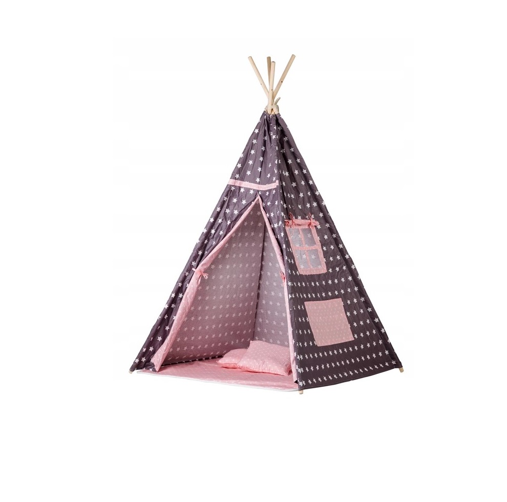 Cort si Spatiu de Joaca PREMIUM pentru copii IDL, Little Indian, Dimensiuni 160 x 100 x 100 cm, Accesorizat cu un Covor moale si 2 Perne, Incurajeaza joaca creativa oferind cadrul perfect care ajuta copilul sa isi dezvolte mintea si modul de gandire