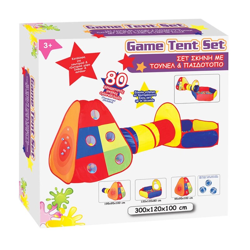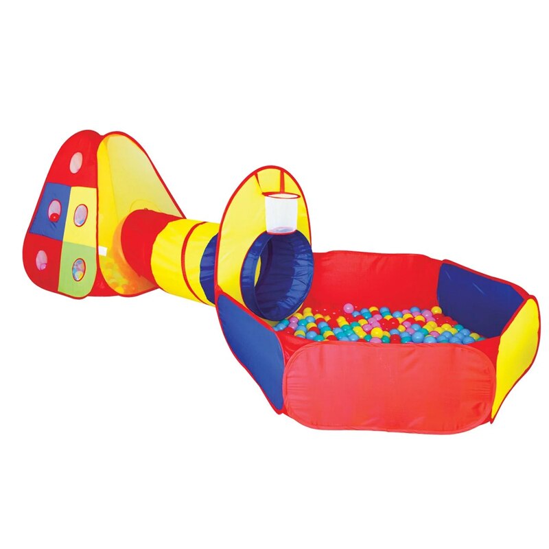 Cort tip tunel pentru copii, 300 x 120 x 100 cm, 80 bile, 3 ani+