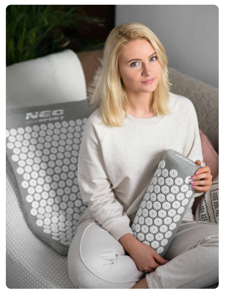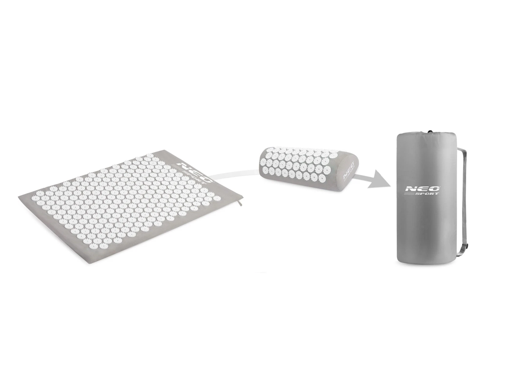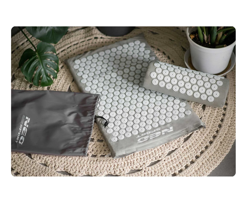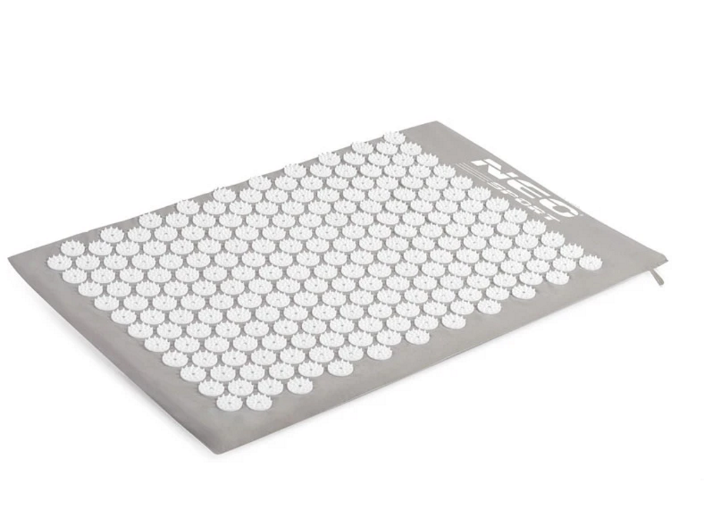 Covoras de Presopunctura NeoRelax idealStore, Tehnologie Heat-Press, Husa Detasabila, Saculet de Depozitare, Ajuta la Diverse Afectiuni, Culoare Gri Alb