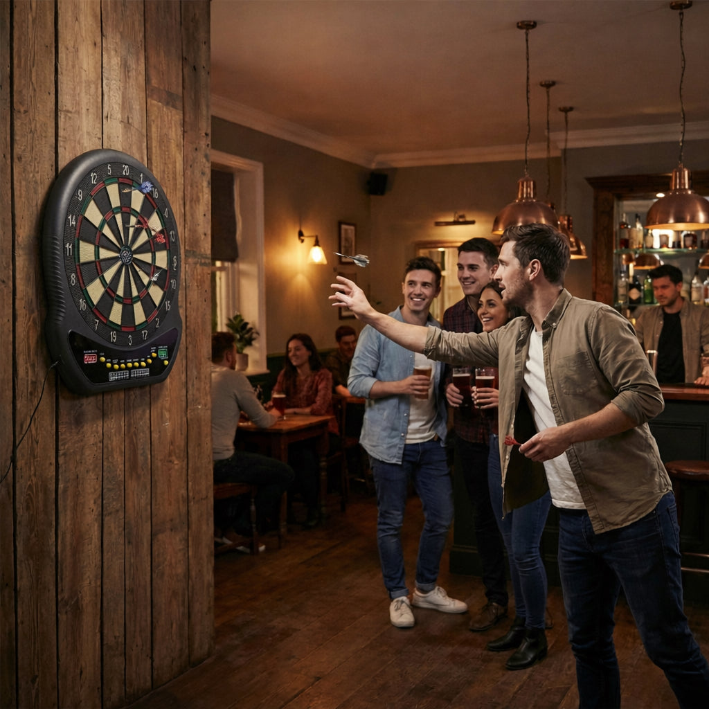 Datorita tehnologiei „soft tip”, sagetile sunt sigure pentru pereti si pot fi folosite de copii (sub supraveghere). Modelul permite pana la 16 jucatori simultan – perfect pentru familii, grupuri mari, baruri sau petreceri.