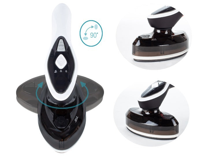 Constructia fierului de calcat va permite sa intoarceti piciorul cu 90 ° cu un singur buton. in functie de nevoile noastre, putem folosi asadar o suprafata de calcat mai larga sau mai ingusta, mentinand in acelasi timp aceeasi directie de functionare a dispozitivului.