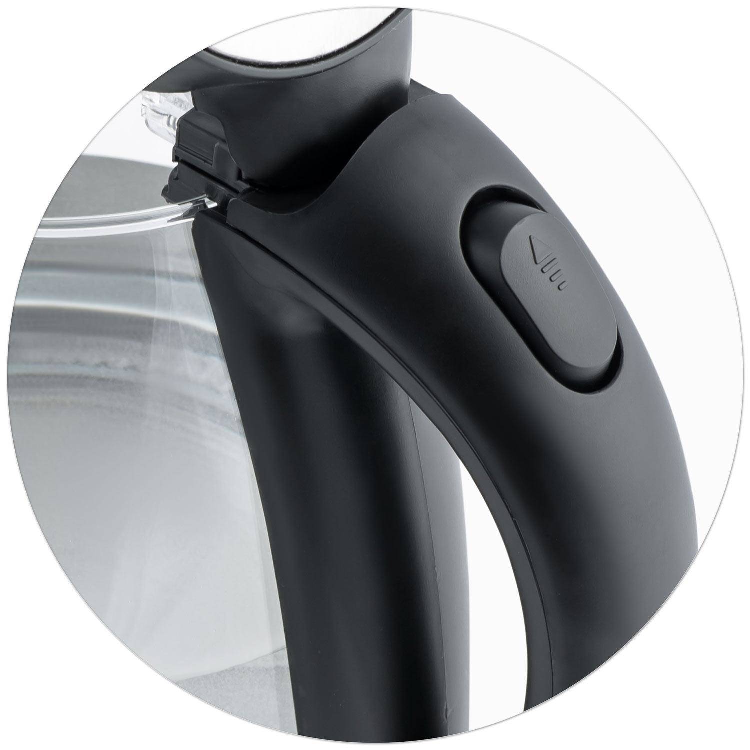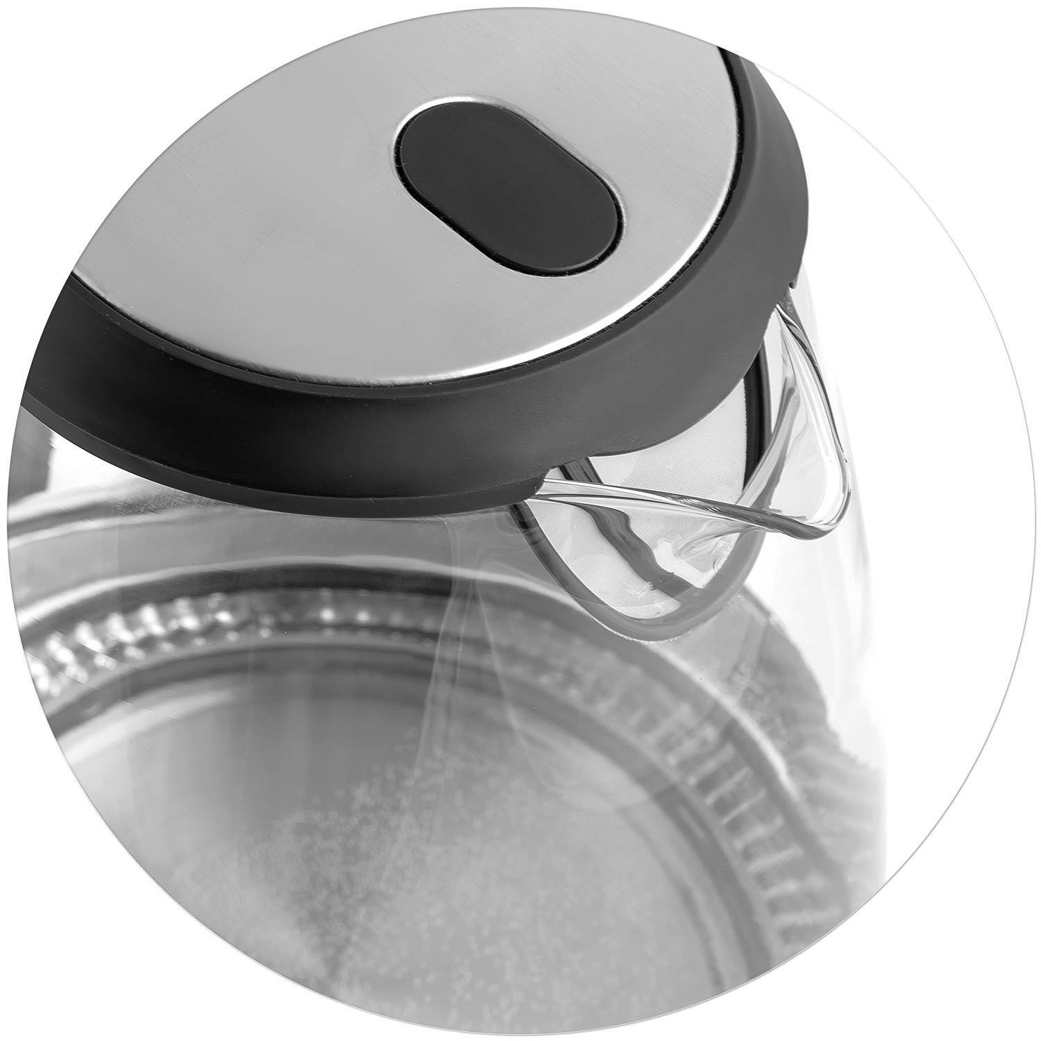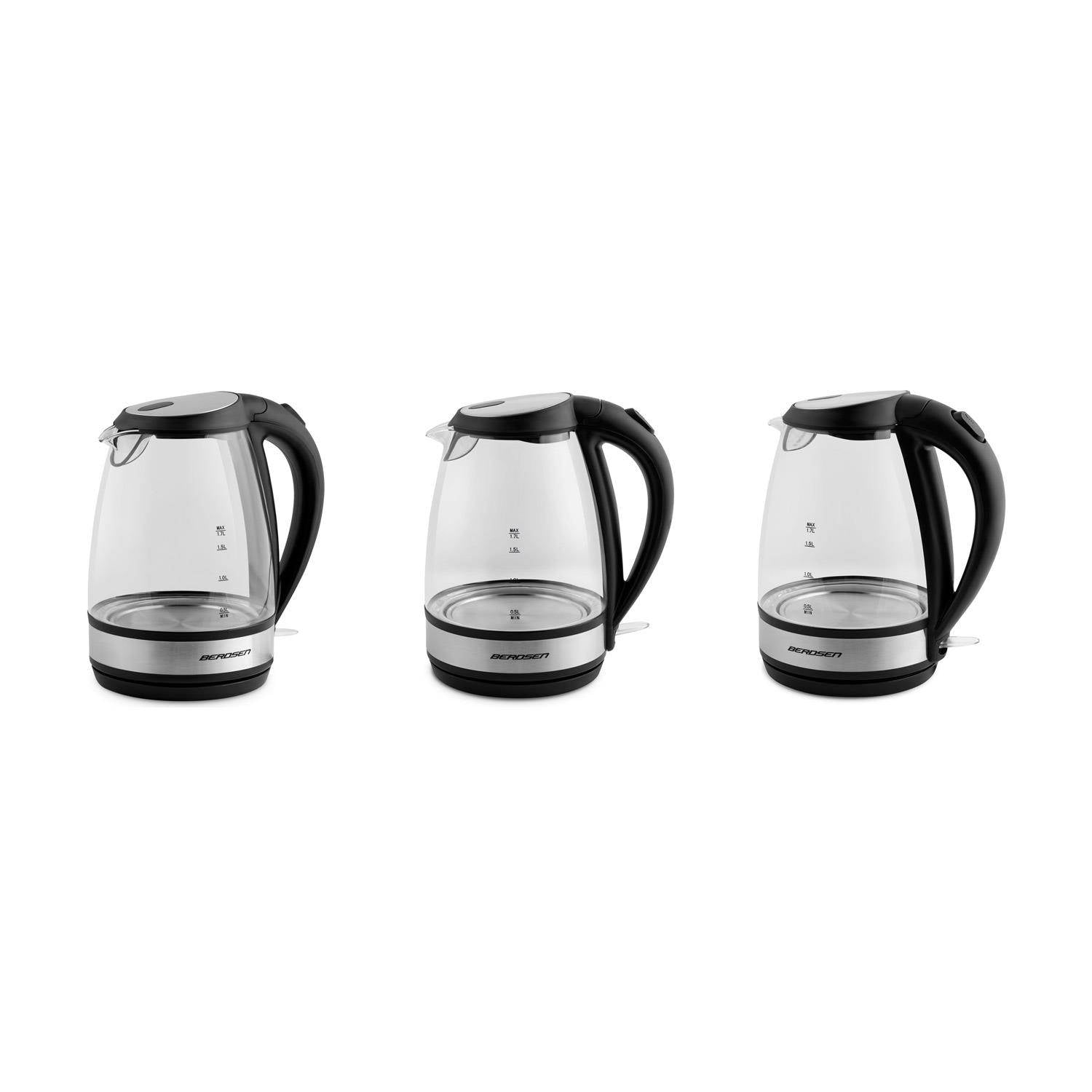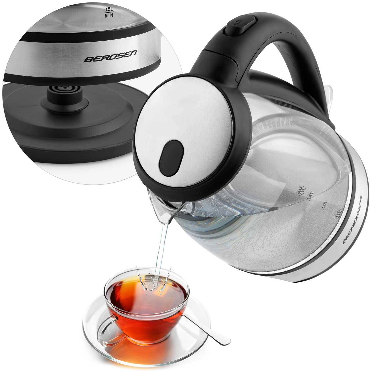 Fierbator Electric Berdsen din sticla idealSTORE, Dimensiuni 25 x 21 cm, Capacitate 1,7L, Protectie impotriva gatirii uscate, Baza pivotanta 360, Picioare antiderapante, Iluminat Albastru, Modern