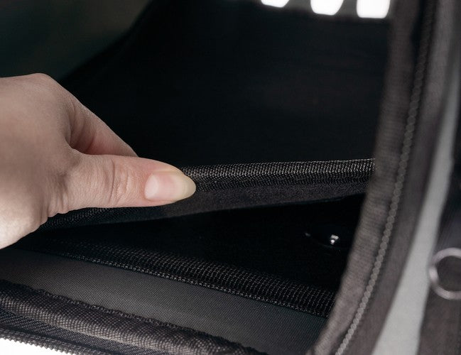 CUREA PENTRU TRANSPORT- cureaua reglabila pentru a fi purtata peste umar cu posibilitatea detasarii complete de geanta, precum si maner ergonomic pentru transportul comod al animalului de companie il face mai usor de utilizat. Fermoarele foarte convenabile plasate in fata si pe cele 2 parti ale casutei simplifica intrarea si iesirea animalului. Geanta este pliabila la dimensiuni mici, facandu-i depozitarea extrem de usoara.