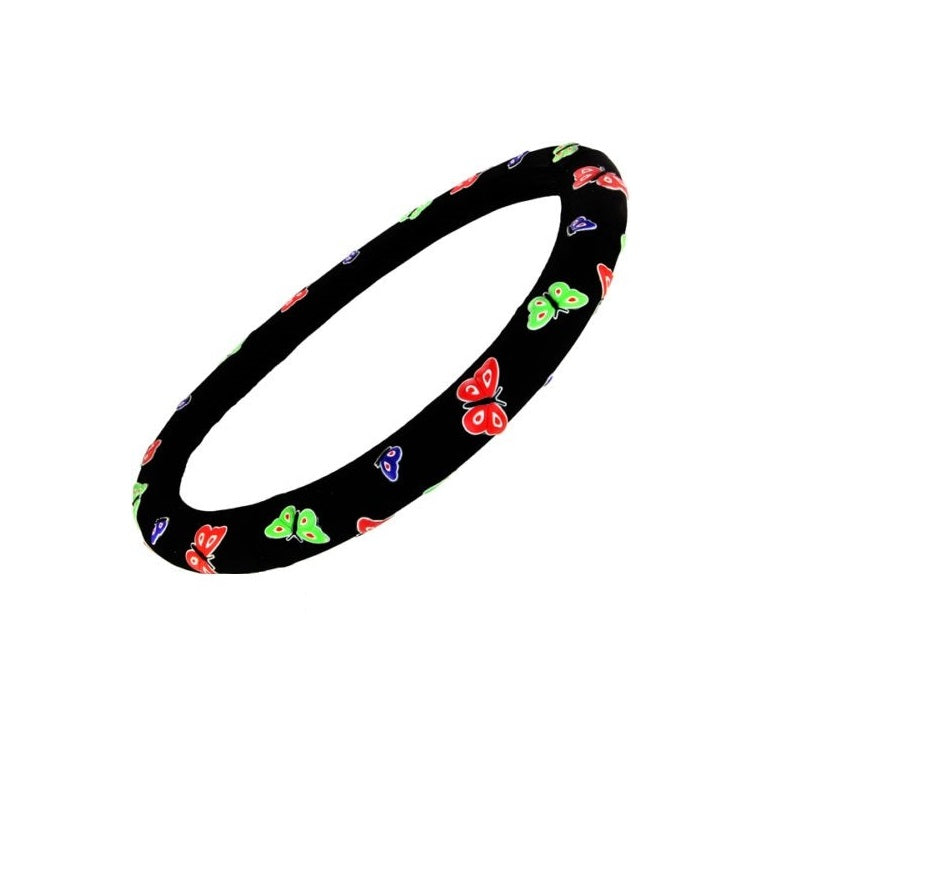 Husa de volan PREMIUM, Marimea M, Model cu fluturi din imitatie de piele pentru un aspect placut al masinii si un confort sporit, Reduce gradul de oboseala, permite manevrarea mult mai usoara a volanului si protejeaza impotriva degradarii, Multicolor