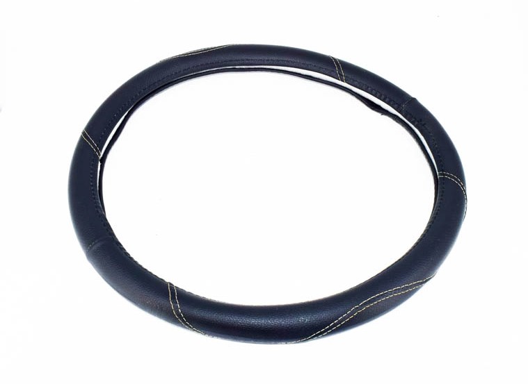 Husa volan IdealSTORE FX61 din imitatie de piele marime M ,culoare negru cusatura gri deschis