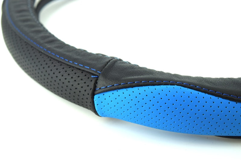 Husa volan IdealSTORE, imitatie de piele, marime M, culoare negru-albastru, Diametru 37-38 cm