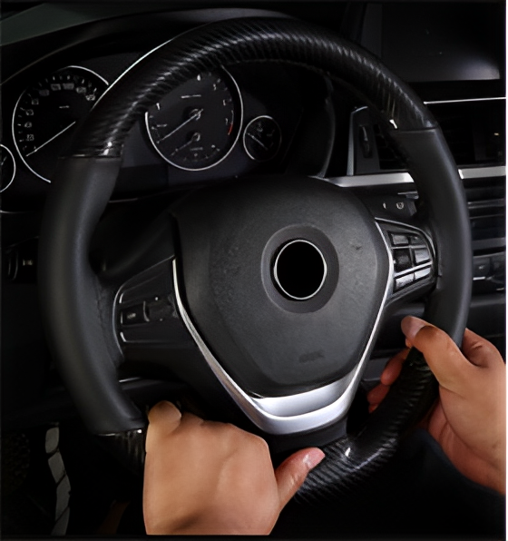 Husa volan IdealStore cu ac si ata piele cu gaurele marime: M Culoare: negru + carbon cu cusatura gri - PREMIUM