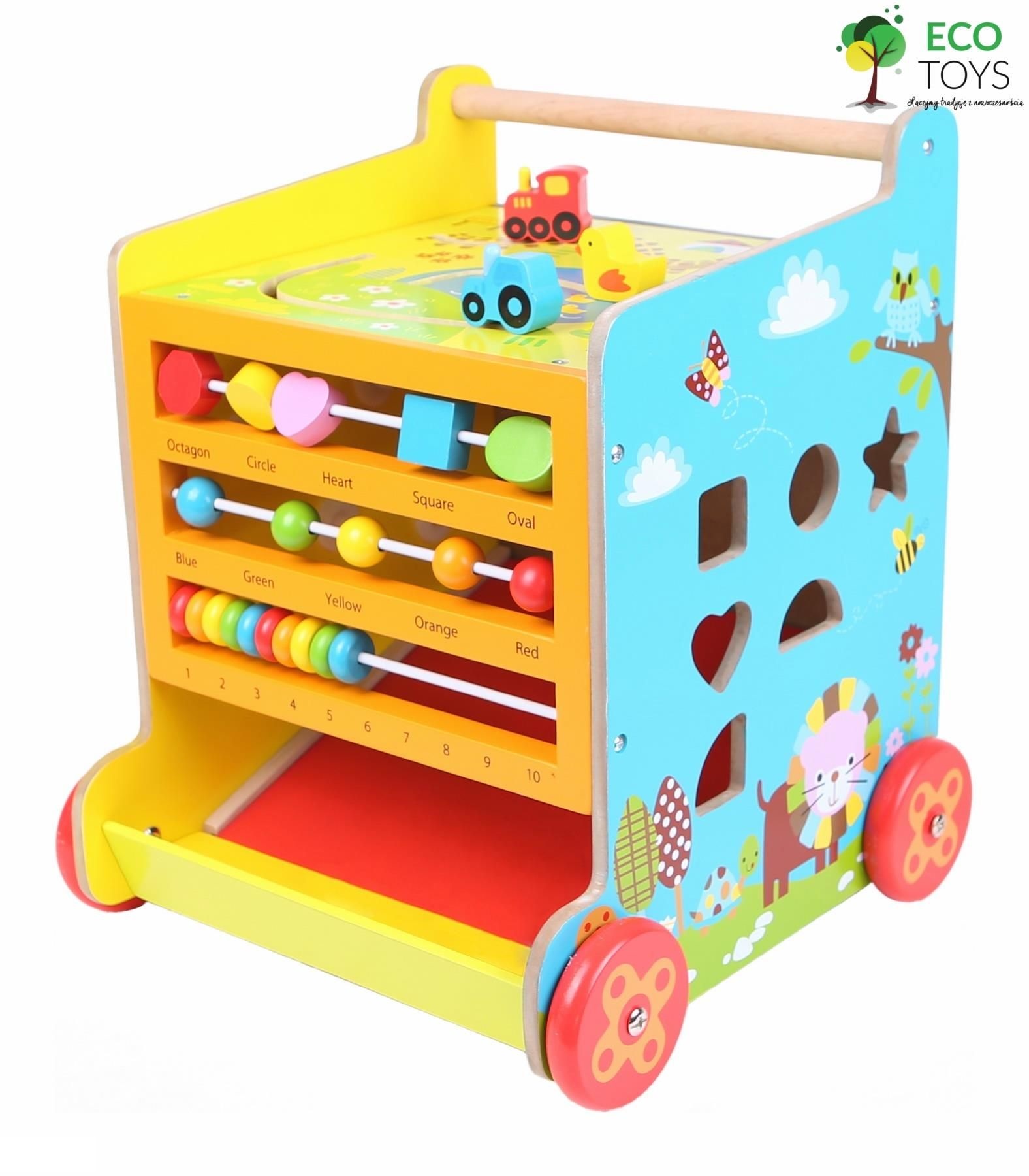 Alegerea ideala poate fi asa-numitul impingator educational - o jucarie foarte practica, datorita careia copilul nostru invata sa mearga. De asemenea, dezvolta abilitatile motrice ale copilului, deoarece fiecare dintre peretii impingatorului are o functionalitate si caracter complet diferite .