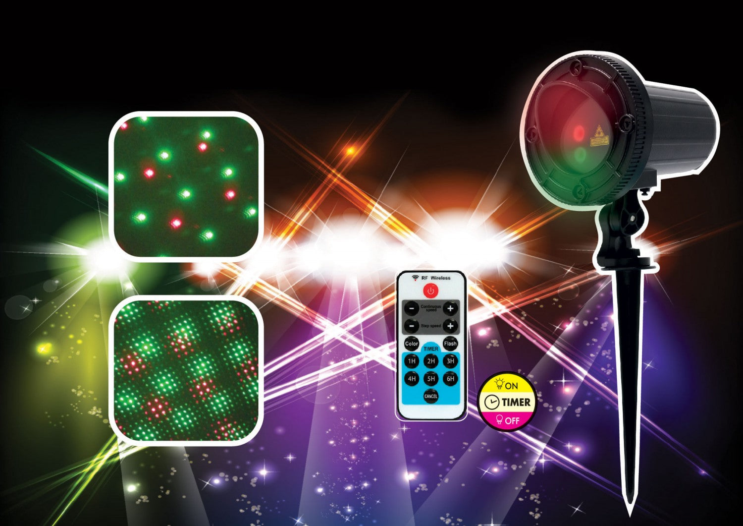 Instalatie Craciun IDL Laser Shower cu telecomanda ce creeaza efecte speciale de licurici clipitori in tonuri de verde si rosu, Carcasa de aluminiu si tarus de fixare din metal