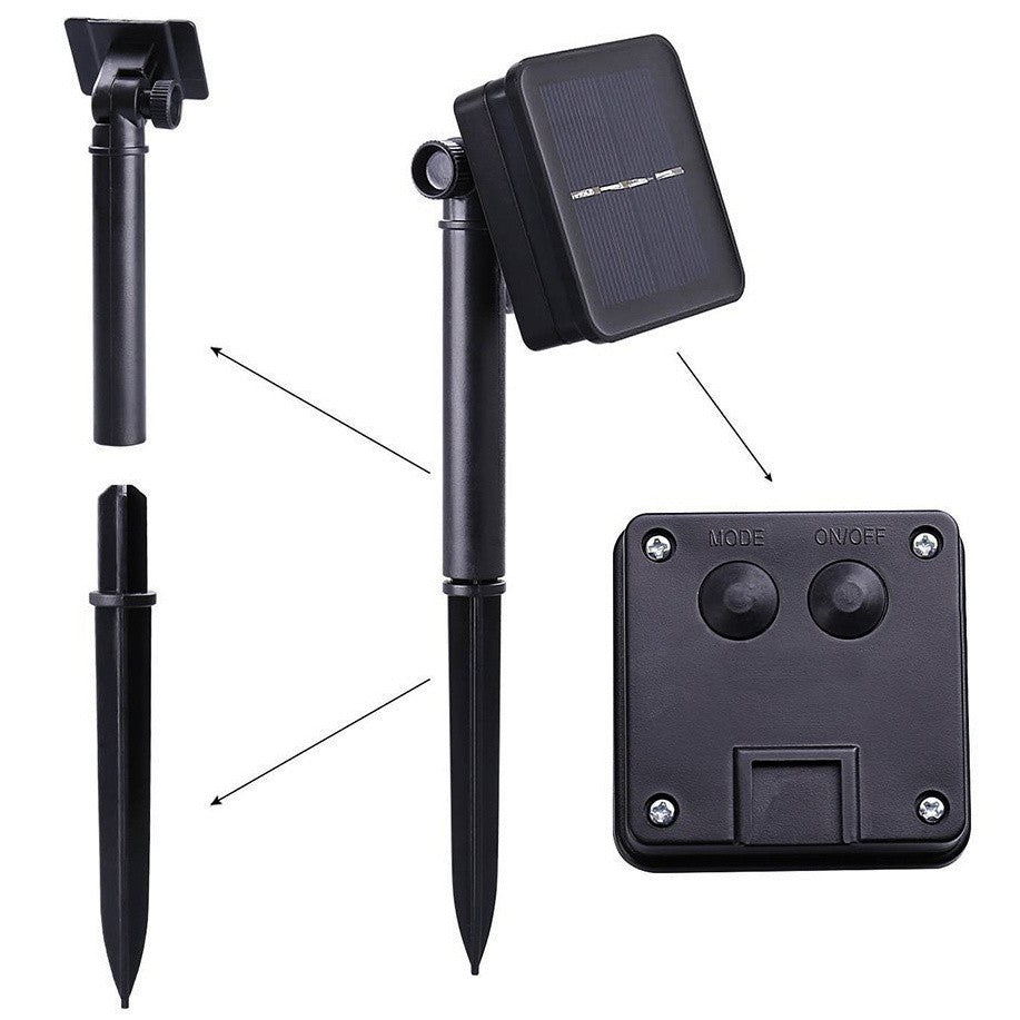Aceasta instalatie este prevazuta cu 100 LED-uri cu lumina multicolora, cu o putere de 0.2W, panou solar 2v 100mA (siliciu monocristal) si 1 baterie NI-MH 600 mAh. Cablul instalatiei are lungimea de 9.9 metri, iar cablul de alimentare este de culoare verde.