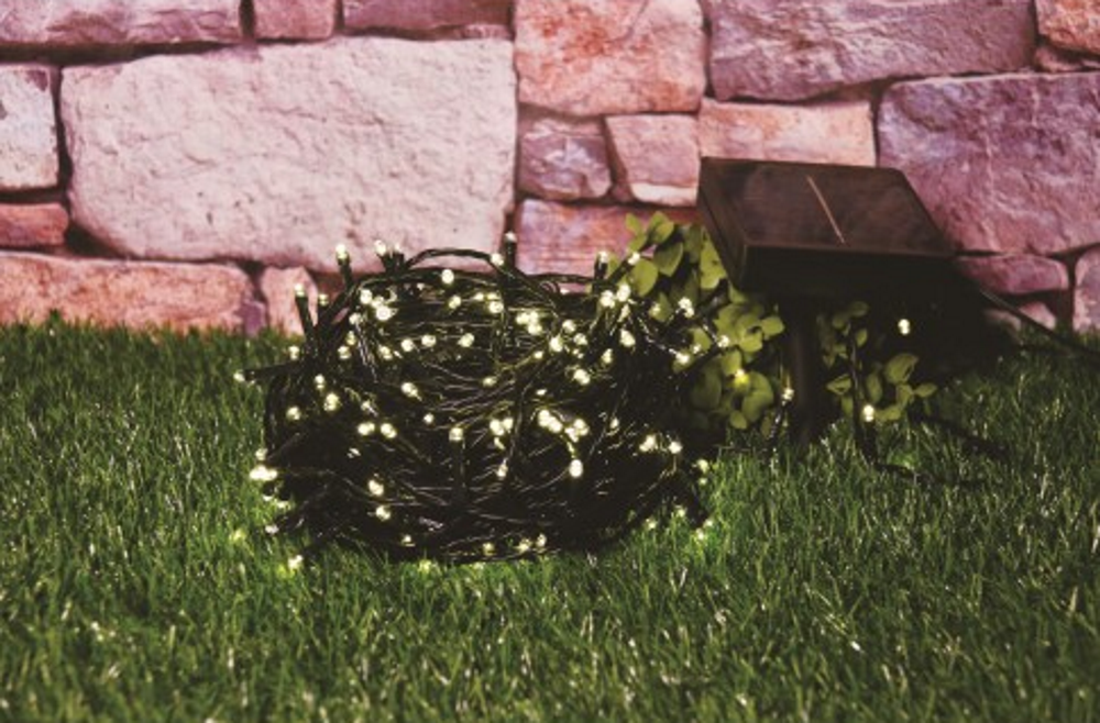 Instalatie Profesionala idealSTORE, Panou solar 2v 100 mA, Acumulator incorporat, 100 Led-uri cu luminca calda 9,9 m, control exterior, 8 Functii de iluminat, Protectie IP44, Lumina Alb-Cald