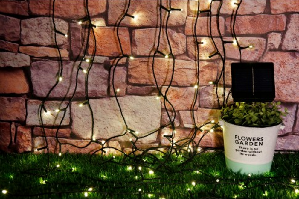 Aceasta instalatie este prevazuta cu 100 LED-uri cu lumina calda, cu o putere de 0.2W, panou solar 2v 100mA (siliciu monocristal) si 1 baterie NI-MH 600 mAh. Cablul instalatiei are lungimea de 9.9 metri, iar cablul de alimentare este de culoare verde.
