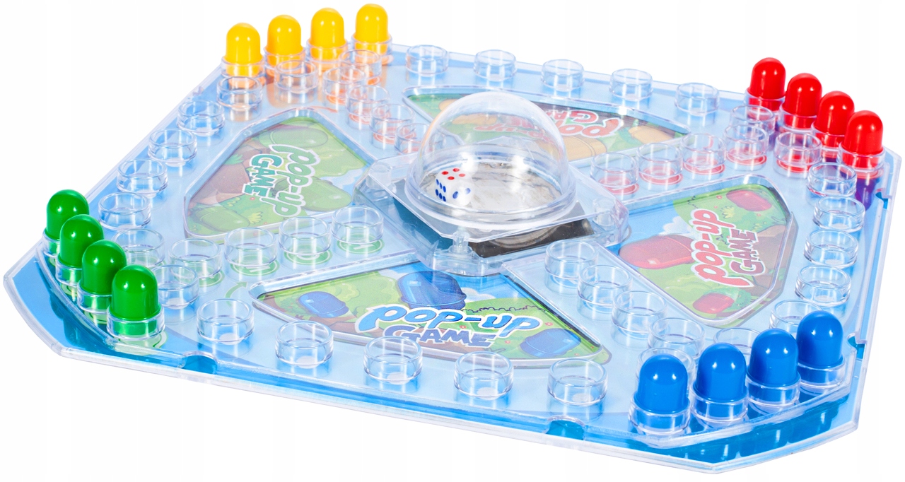 Tabla este impartita in patru zone. Tabla are trasee din plastic cu cavitati pentru pioni, iar in centru se afla un zar sub cupola transparenta a sistemului Pop Up.