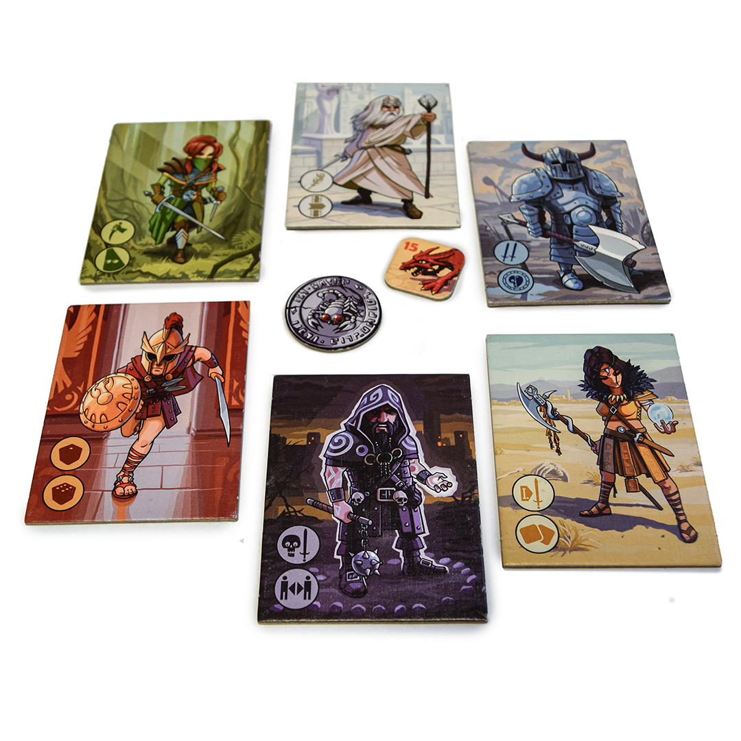 43 de jetoane monstri (1 dragon, 2 strigoi, 12 schelete purtatoare de cheie, 3 schelete de regi, 5 schelete de razboinici, 8 sobolani uriasi, 4 paienjeni uriasi, 8 mumii)