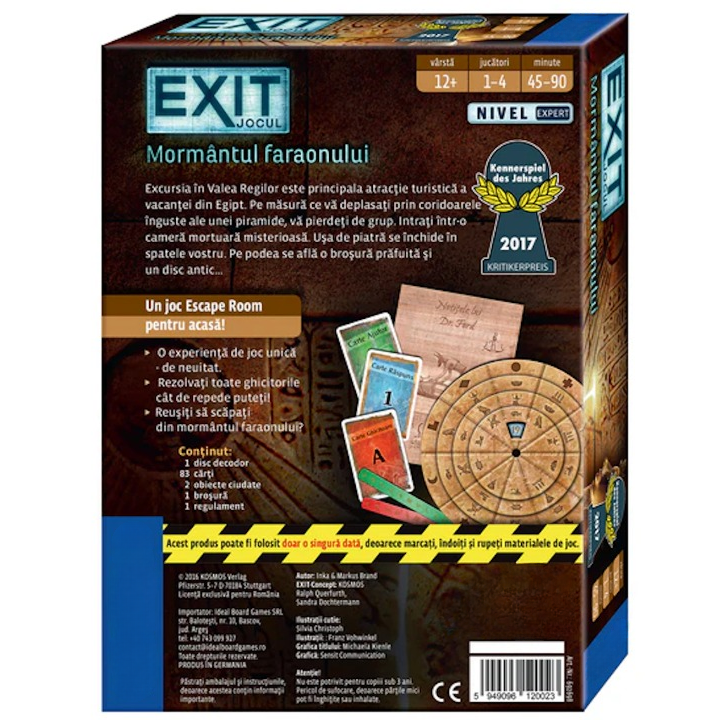 Joc de Societate idealSTORE Mormantul Faraonului, Nivel de Dificultate Expert, Experienta Unica de Joc, Rezolvati Ghicitoriile, Intrati in Camera Mortuara, Explorati Coridoarele Piramidei din Egipt