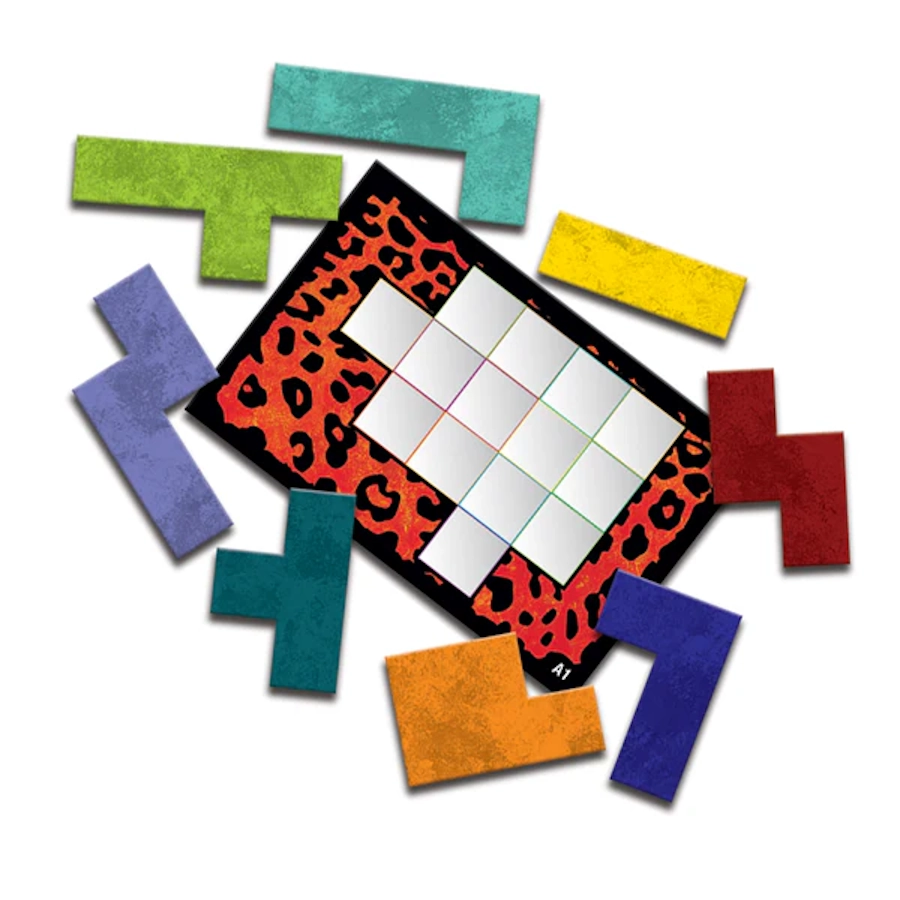 Joc de Societate Ubongo Mini idealSTORE, un Joc Rapid si Usor de Inteles, Trebuie sa Acoperiti cat mai Repede Suprafata Alba de pe Cartile de Joc, 32 de Carti, 64 de Variante
