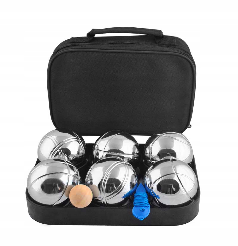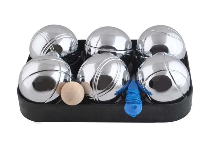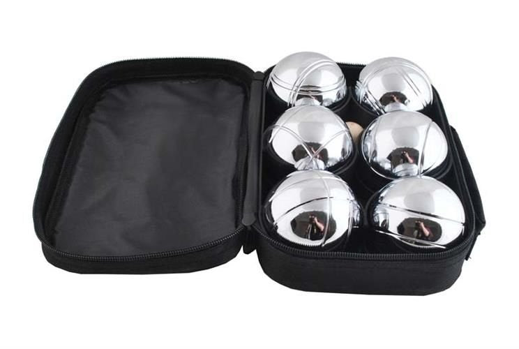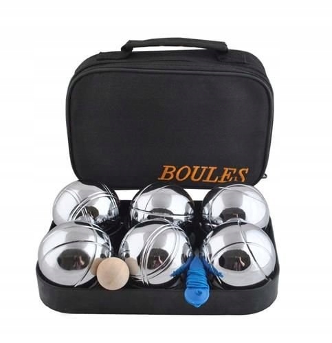 Joc Interactiv Boules idealStore, 6 Bile Cromate, 1 Minge de Referinta din Lemn, Sfoara Pentru Masurarea Distantei, Husa cu Fermoar si Maner, Pentru Toate Varstele