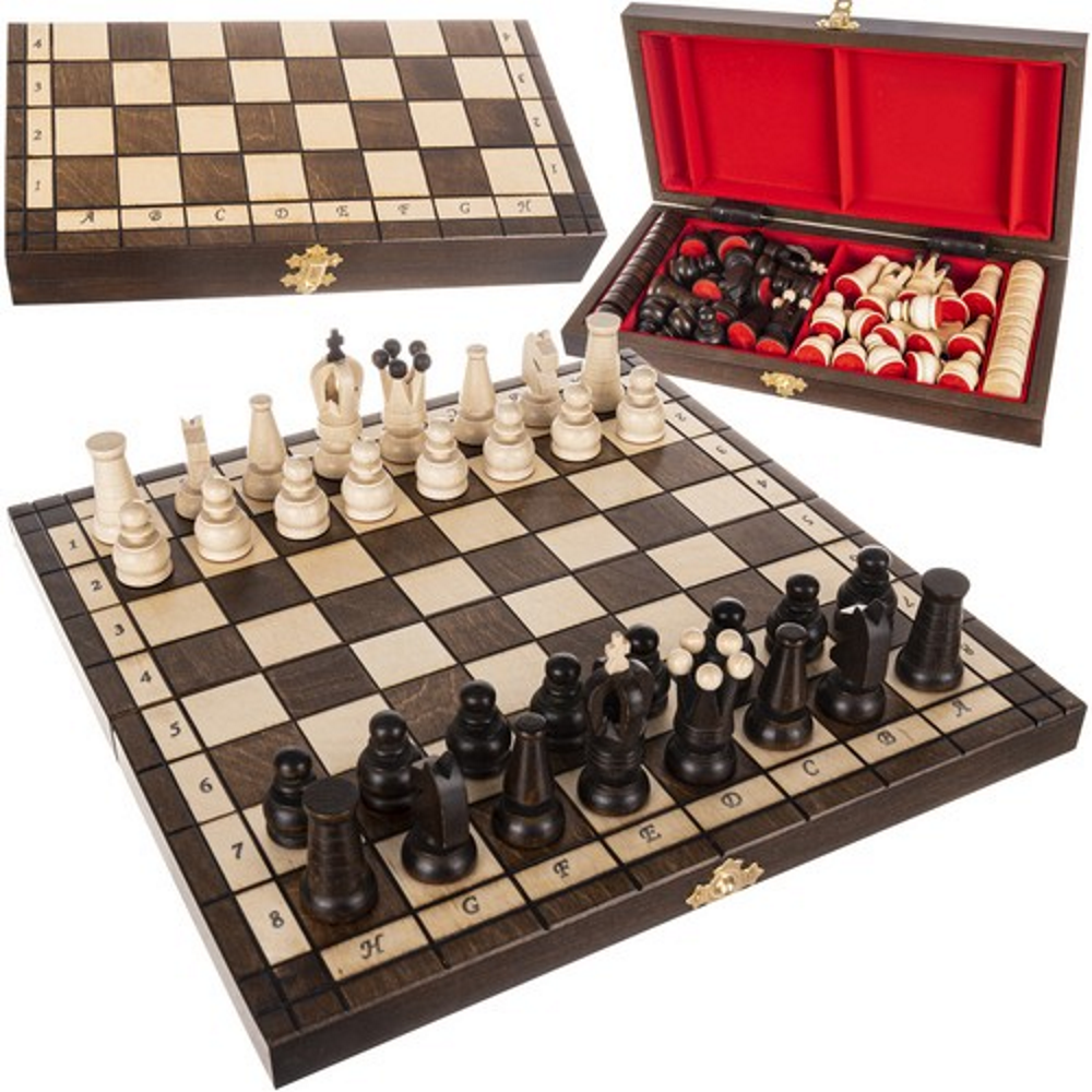SET DE LEMN - setul include o tabla, piese de sah, piese de sah si dame. Realizat din lemn, jocul este durabil, elegant si atemporal. Setul va va servi foarte mult timp.